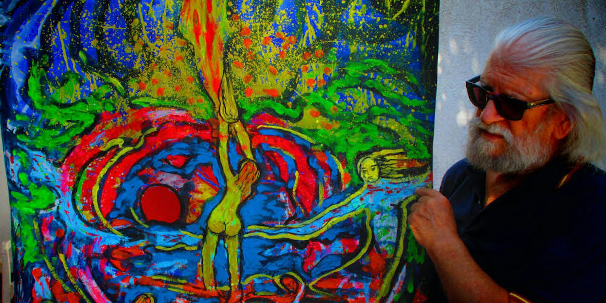 Was Daub aktuell umtreibt, ist der Umstand, dass ihm das Papier ausgegangen ist. Seinen Tagesrhythmus bringe das schon durcheinander, sagt er. Denn normalerweise gehört die Malerei für ihn jeden Tag einfach dazu. „Bei dieser Arbeit empfinde ich ein großes Glücksgefühl. Wenn ich an die Leinwand gehe, weiß ich noch nicht, was ich malen werde, doch sobald ich die Farben aufgetragen habe, sehe ich darin Dinge, die ich in der Folge verstärke und so für alle Betrachter sichtbar machten kann“, erläutert der Künstler seiner Arbeitsweise.