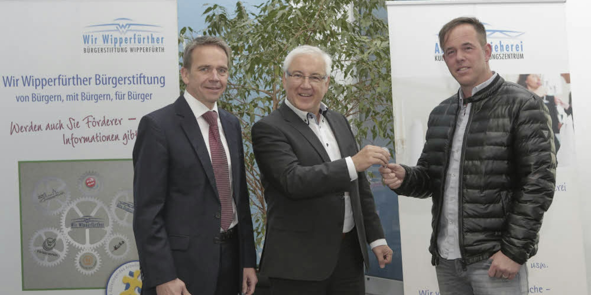 Bei der symbolischen Schlüsselübergabe in der Alten Drahtzieherei (v.l.): Dr. Markus Braun, Harald Klinke und René Köhler.