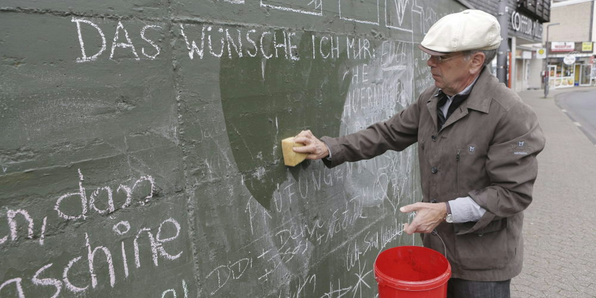 Sonntags rückt Wittschier regelmäßig mit dem Schwamm an, um die Schriftzüge der ablaufenden Woche zu entfernen. „Dadurch gibt es wieder Platz für Neues“, erklärte der Wipperfürther am Wochenende.