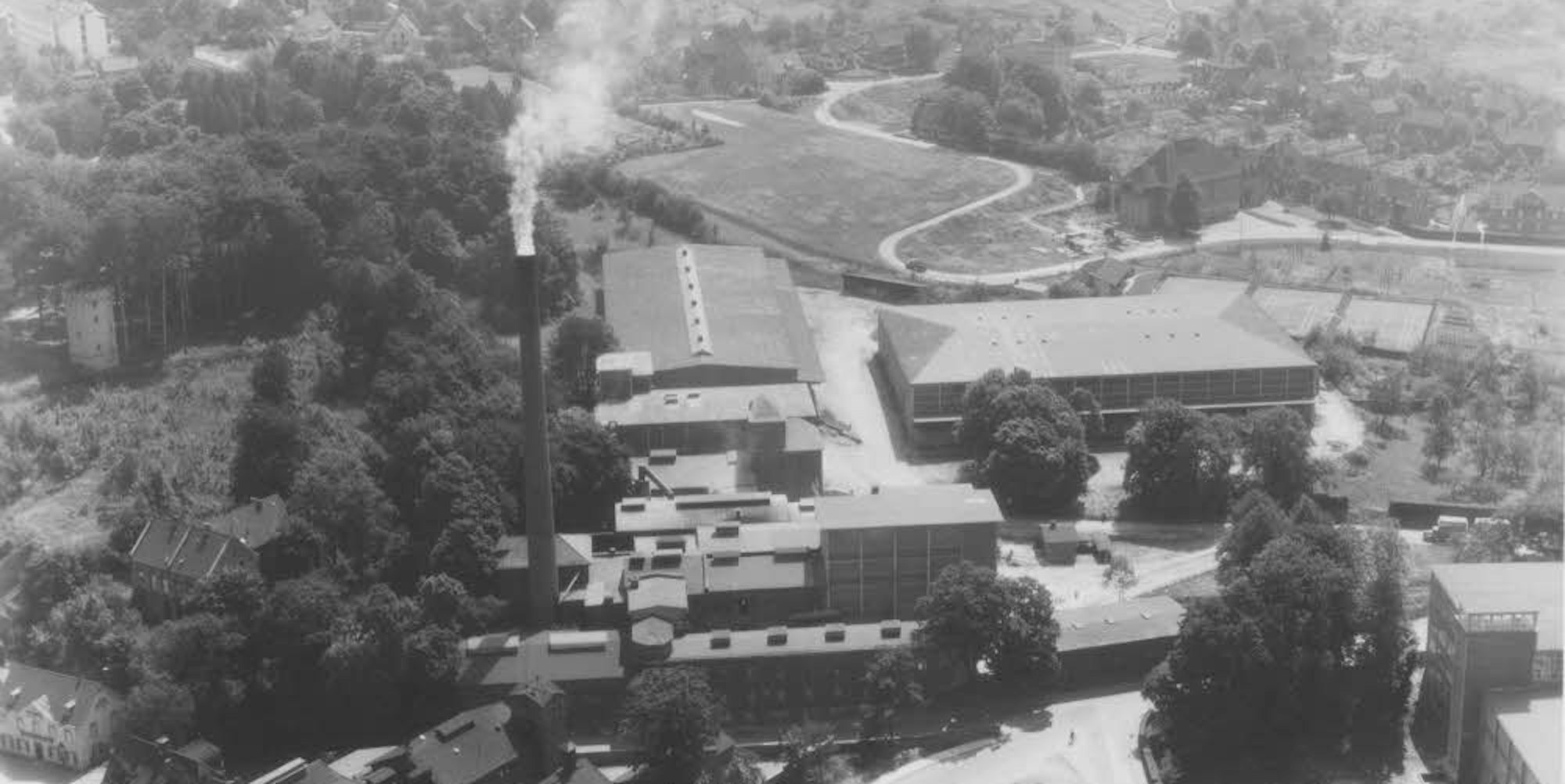 Der berühmte Kirchenbaumeister Dominikus Böhm entwarf das Kraftwerk der Firma Zanders, hier im Jahr 1957.