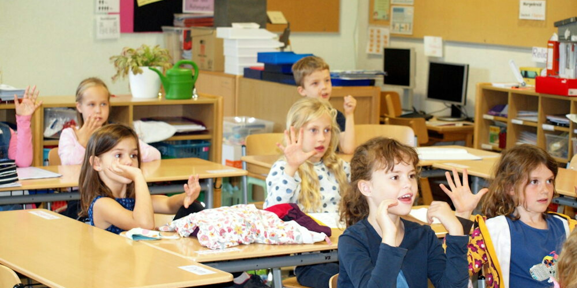 Um sich mit einer gehörlosen Mitschülerin besser unterhalten zu können, lernen die Grundschüler die Gebärdensprache.