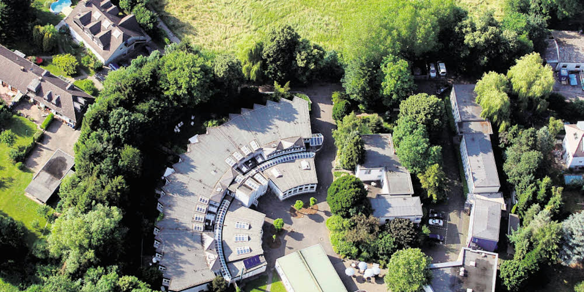 Auf der Freifläche im Landschaftsschutzgebiet am Schlodderdicher Weg (oben im Bild) will die psychosomatische Klinik einen Erweiterungsbau mit 50 Betten errichten.