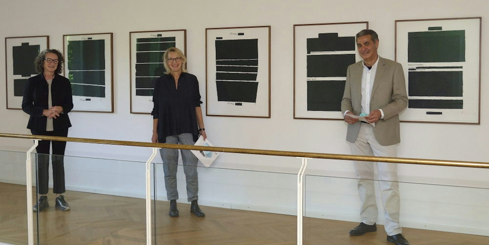 Jenny Holzers sechsteilige Serie zur Foltermethode des „Water Boarding“ ist ein Paradestück der Sammlung. Vereinsvorsitzender Wilhelm Krieger, Museumsdirektorin Petra Oelschlägel und Schriftführerin Sabine Junker (v.r.).