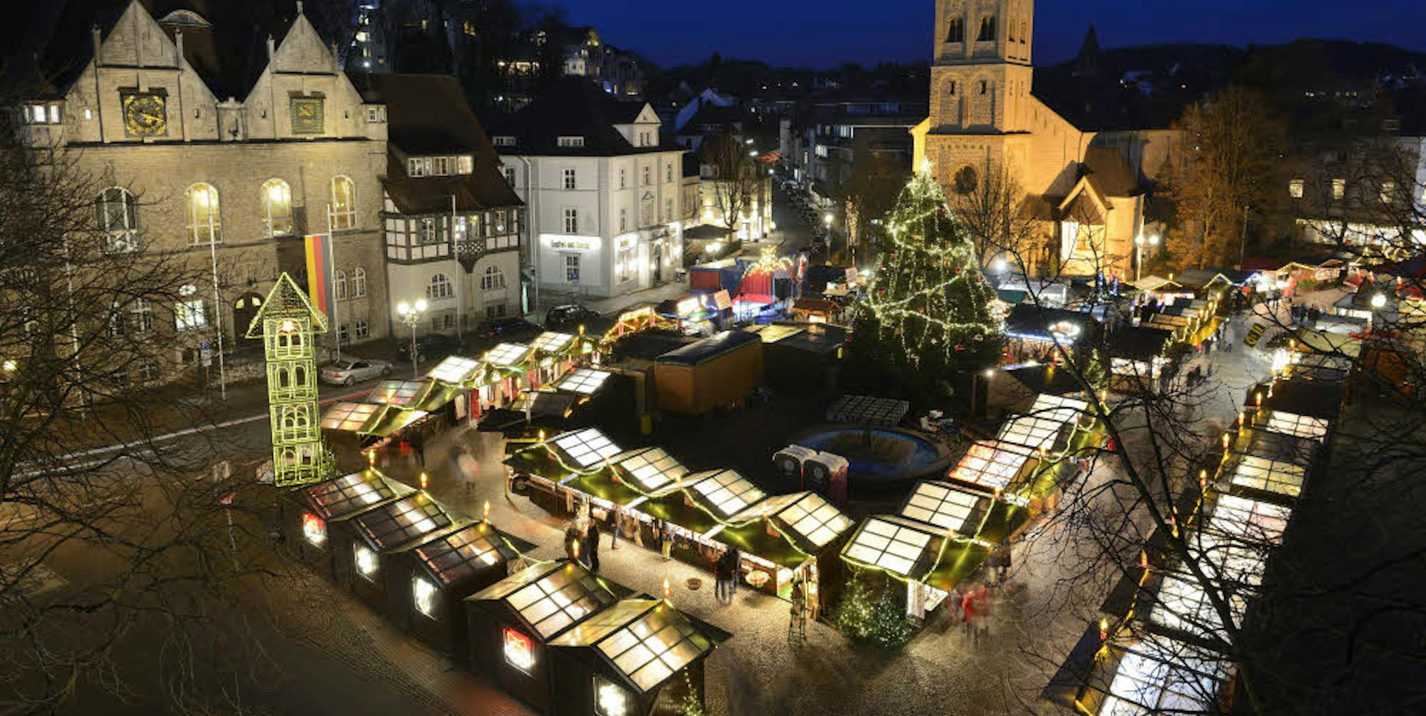 Trotz zahlreicher Überlegungen und Gesprächen mit Beteiligten und Behörden, wie man einen Weihnachtsmarkt coronakonform hätte organisieren können, zog die Interessengemeinschaft Stadtmitte als Veranstalter jetzt die Reißleine. Eine „Durchführung unter den aktuellen, und sich zukünftig sicher weiter verschärfenden Rahmenbedingungen der Corona-Schutzverordnung NRW“ sei dem Verein „organisatorisch und wirtschaftlich nicht möglich“, so der IG-Vorsitzende Mark Peters in einer am Mittwoch versendeten Pressemitteilung. Auch das traditionelle Turmblasen an Heiligabend werde in diesem Jahr ausfallen.