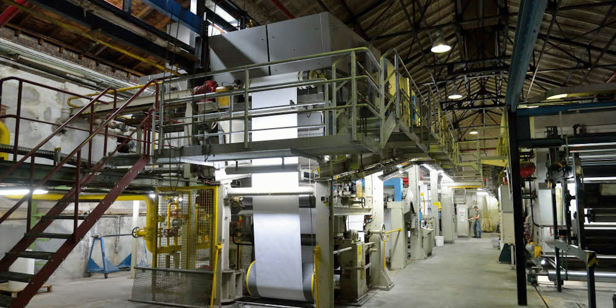 An dieser Maschine bei Zanders werden neue Papiersorten entwickelt und ausprobiert.