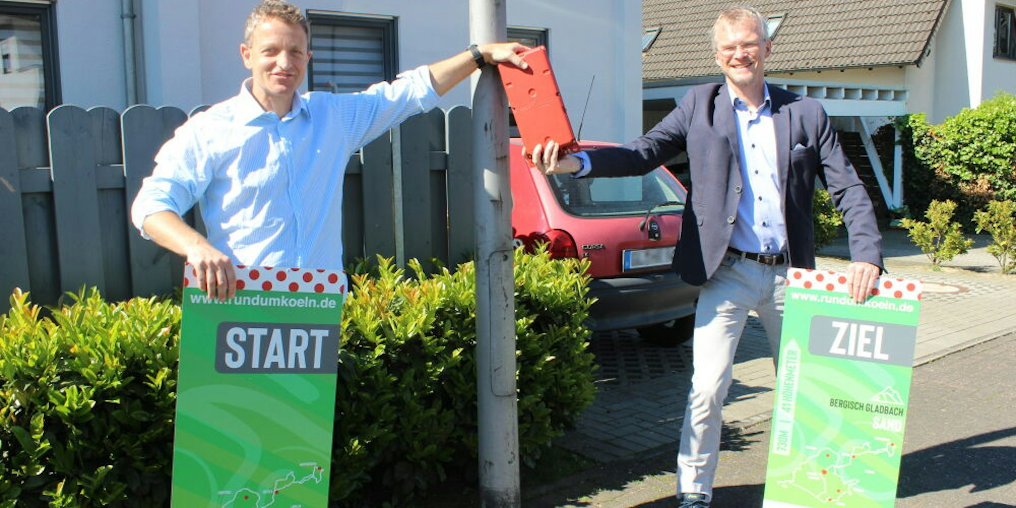 Rhein-Berg – Am Freitag kommen die Messboxen. Kleine rote Kistchen werden jeweils am Steigungsbeginn und am Ende der Kletterpartie aufgehängt, meist an Straßenlaternen.