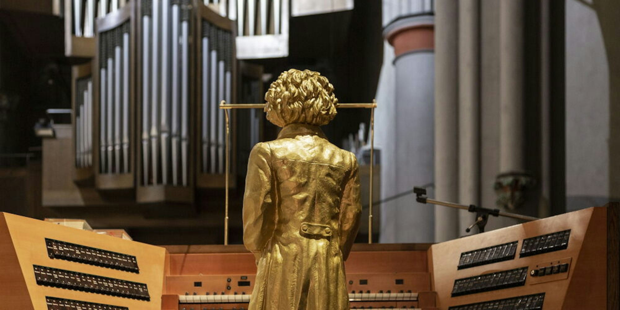 Die Klais-Orgel im Altenberger Dom hätte Beethoven sicher gefallen. Die Figur stammt von Ottmar Hörl.