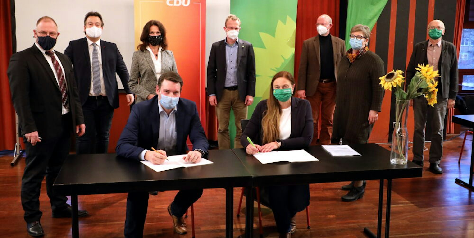 Gemeinsam mit ihren Kollegen aus Kreisvorständen und Kreistagsfraktionen haben Ursula Ehren (Grüne) und Uwe Pakendorf (CDU) den Koalitionsvertrag für die nächsten fünf Jahre unterzeichnet.