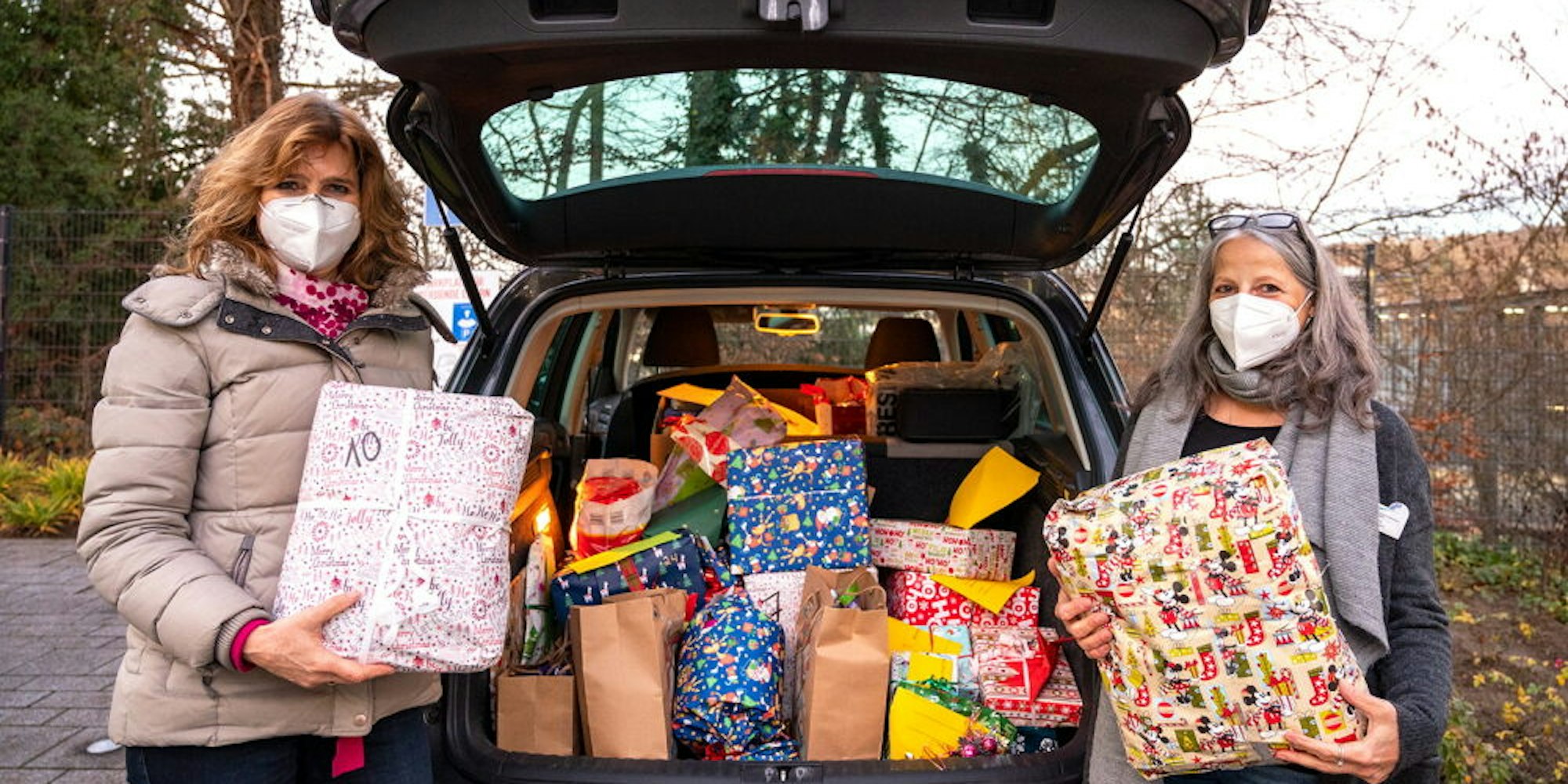Im Advent fand die Geschenkaktion der „Guten Hand“ statt – auch auf Abstand, mit Catja Teicher (l.) und Beatrix Rey, Evk.