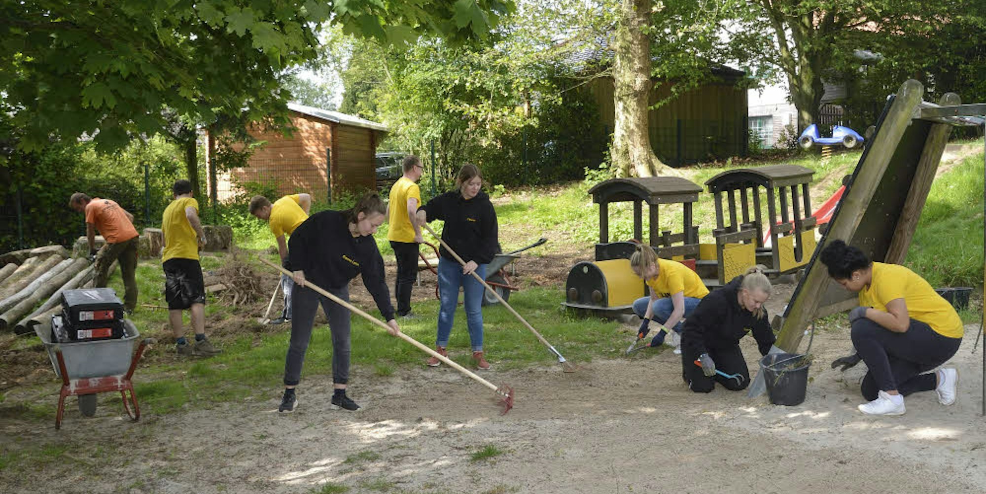 Rhein-Berg/Odenthal – Normalerweise nehmen große Projekte viel Zeit in Anspruch. Egal, ob die Planung im Vorfeld, die Organisation von Helfern oder die Finanzierung – bis es zur Umsetzung kommen kann, müssen einige Hürden genommen werden. Vier Tage für den Ausbau des Außengeländes einer Kita oder für die Pflanzung einer Bienenwiese, das klingt schon fast utopisch und doch ist es möglich.