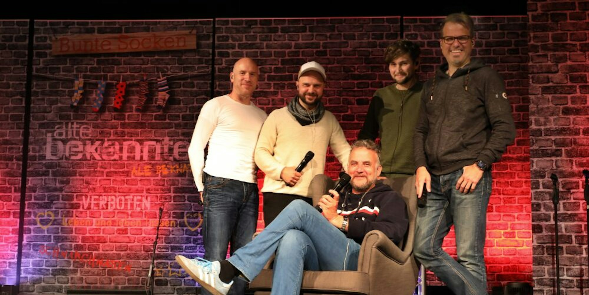 „Hier im Bergischen Löwen sind einfach gute Bedingungen, um Sachen auszuprobieren“, sagt Daniel „Dän“ Dickopf im Gespräch mit dieser Zeitung. „Mit dem Streaming-Konzert wollen wir auch die Vorfreude auf das neue Bühnenprogramm zum aktuellen Album »Bunte Socken« schüren“, sagt der frühere Kopf der „Wise Guys“, der nach deren Auflösung 2017 die „Alten Bekannten“ aus der Taufe hob.