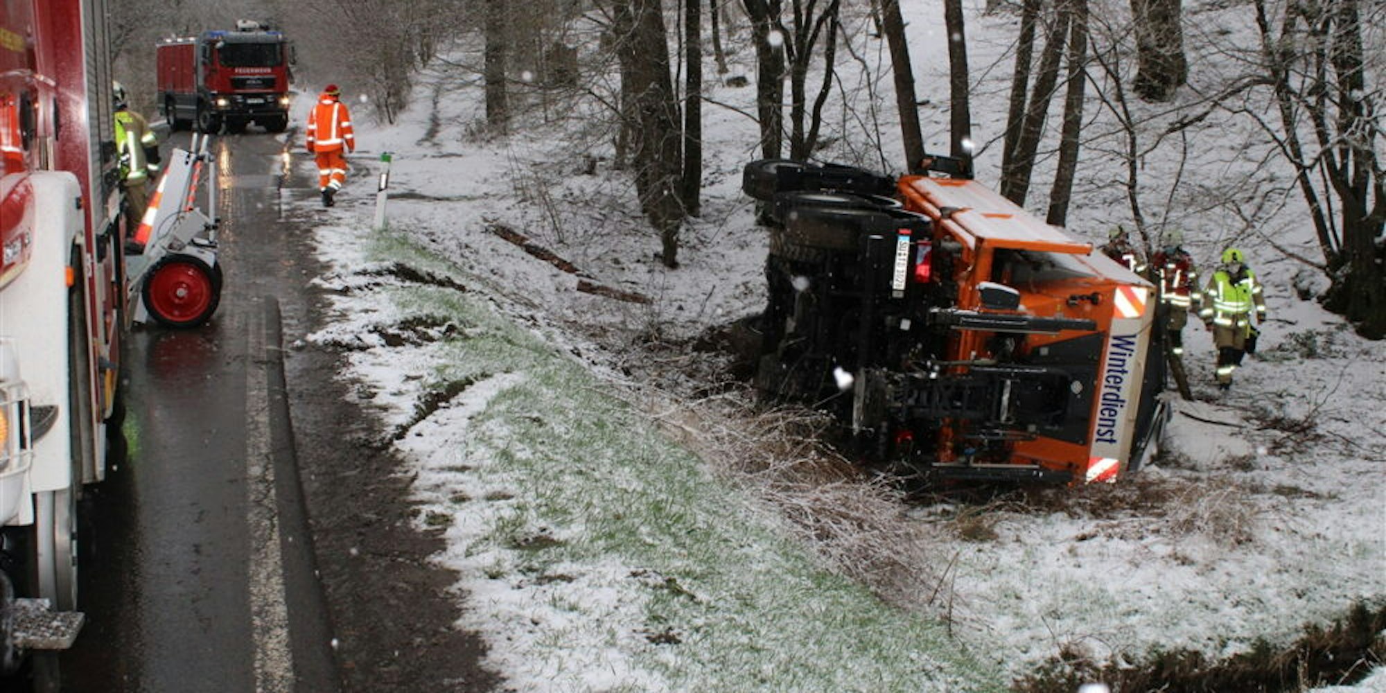 Schnee im Rhein-Berg-KreisStreufahrzeug kippt in Graben