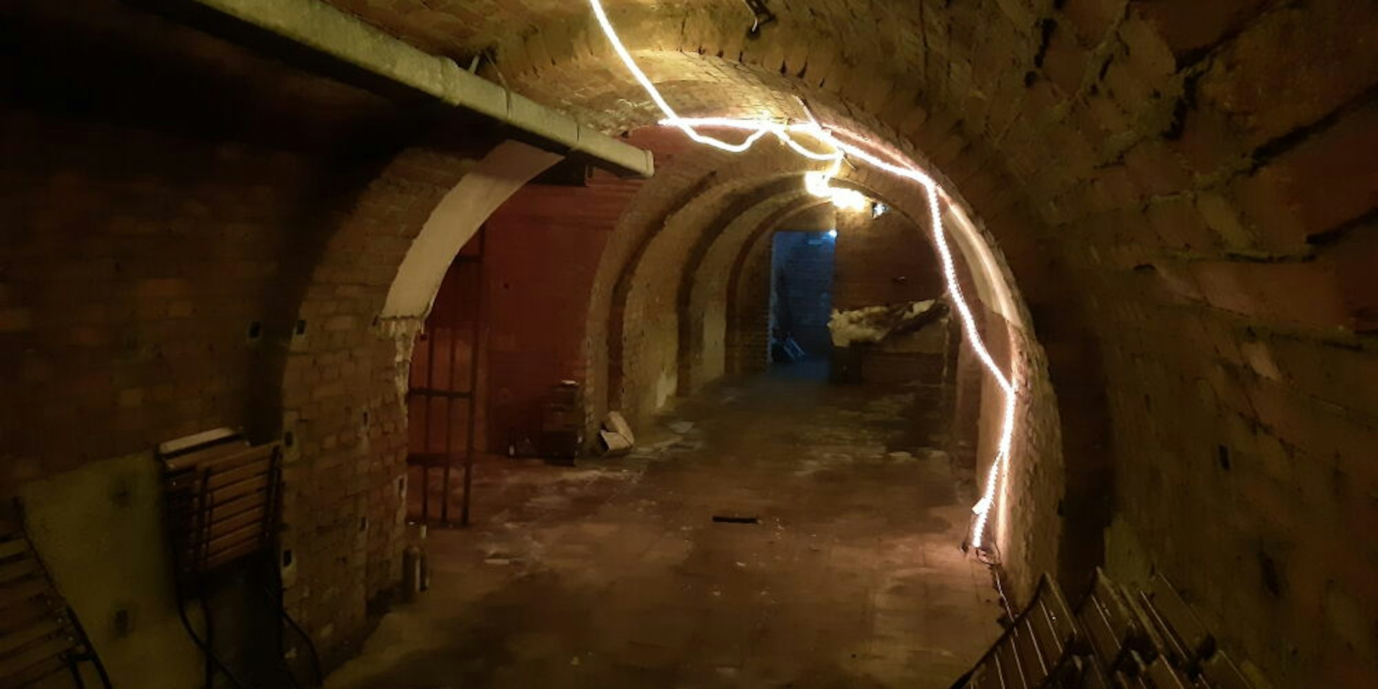 Hinter dem Biergarten der Gastwirtschaft führt eine unscheinbar wirkende Metalltür zu einer ehemaligen Bunkeranlage, die der innerstädtischen Bevölkerung vor den Bombardements Schutz bot. 40 Meter weit führt der bis heute erhaltene, zweieinhalb Meter hohe Luftschutzraum unter den Berg, auf dem das Marienkrankenhaus steht.