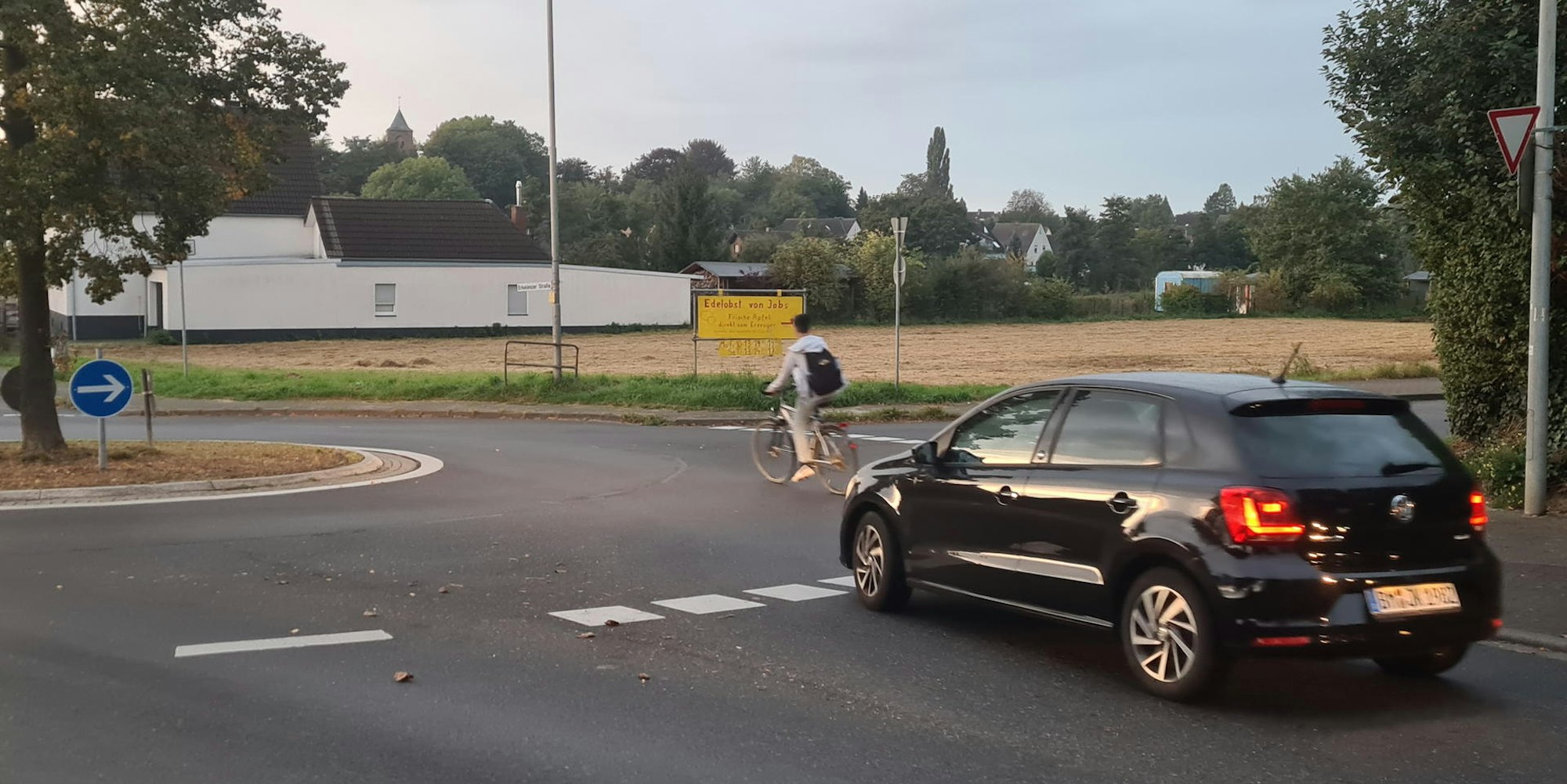 Jens Tempelmann von der Stadtverwaltung versicherte, dass die Verkehrslage im Plangebiet genau untersucht werde. Bei einem Ortstermin zur Stoßzeit um 7.15 Uhr sei sehr eindrücklich zu erkennen gewesen, dass hier eine Gefahrenstelle vorhanden sei. „Am Kreisel muss auf jeden Fall baulich etwas geschehen“, sagte Tempelmann. „Gerade für die Radfahrenden, die von der Harffer-Schloß-Allee kommen, ist die Vorfahrtssituation unklar.“ Die Radfahrer müssten früher auf die Fahrbahn geleitet werden, sagte er, damit alle Verkehrsteilnehmer gleichberechtigt in den Kreisverkehr einführen.
