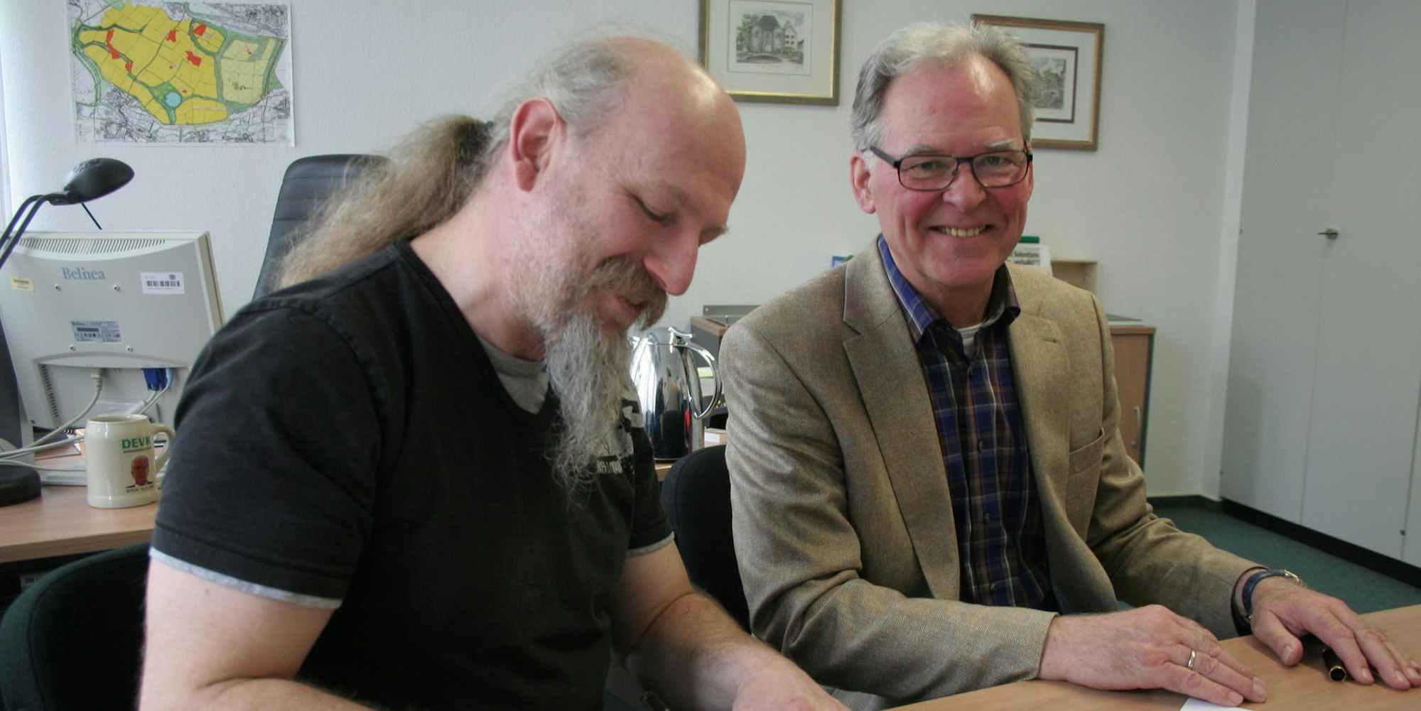 Peter Hirseler, Fraktionsvorsitzender der Grünen, (links) und Johannes Hübner, scheidender Fraktionsvorsitzender der CDU