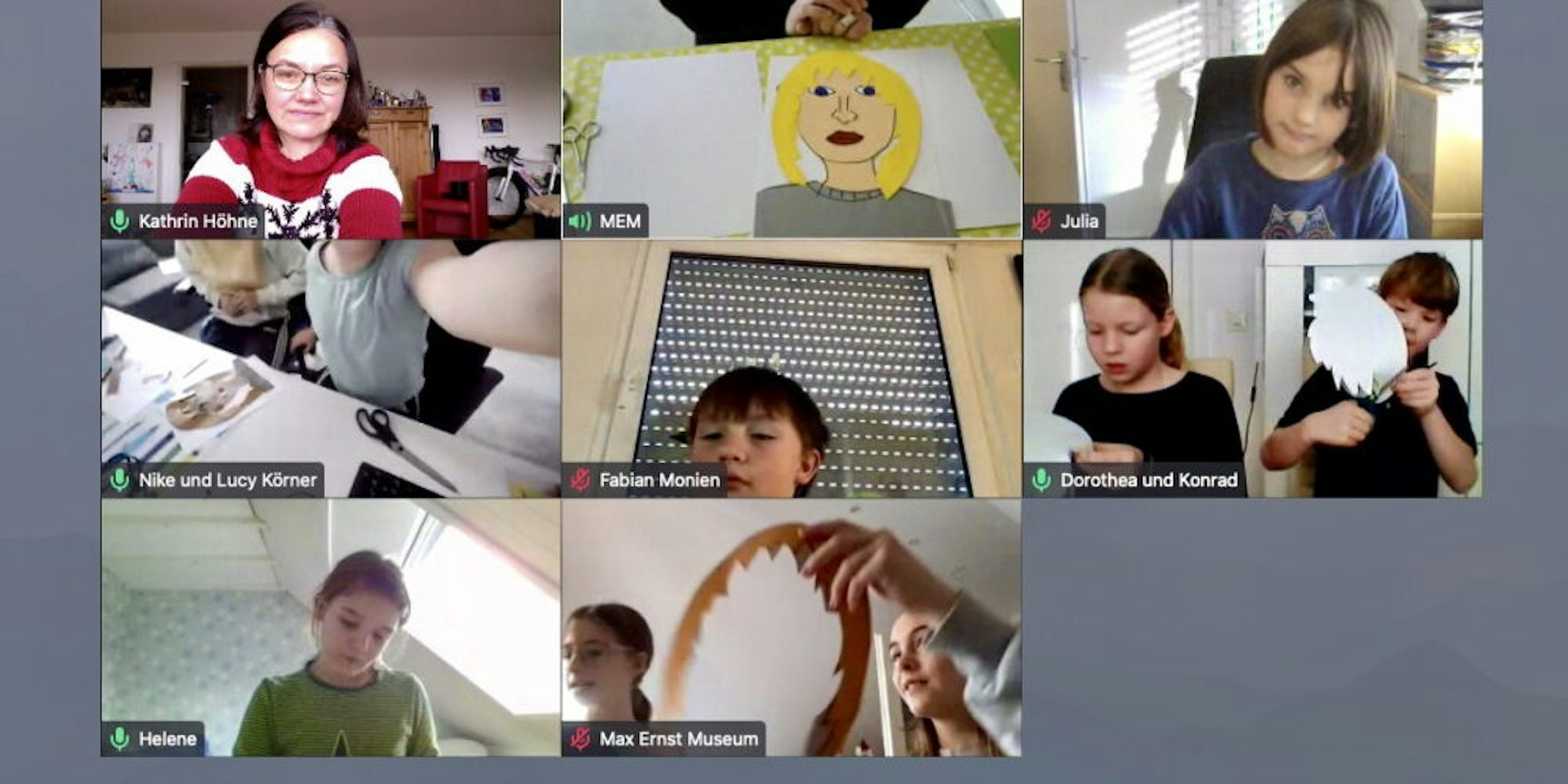 Initiiert hatte diese künstlerischen Aktion das Max-Ernst-Museum, das derzeit regelmäßig solche Online-Veranstaltungen für Kinder im digitalen Live-Format unter dem Titel „Max mal online!“ anbietet. „Hier haben Mädchen und Jungen die Gelegenheit, ihre künstlerischen Fähigkeiten auszuprobieren“, so Irmgard Schifferdecker von der Kunstvermittlung. „Dabei haben die Familienworkshops jedes Mal ein anderes Thema und es wird mit verschiedenen Techniken gearbeitet.