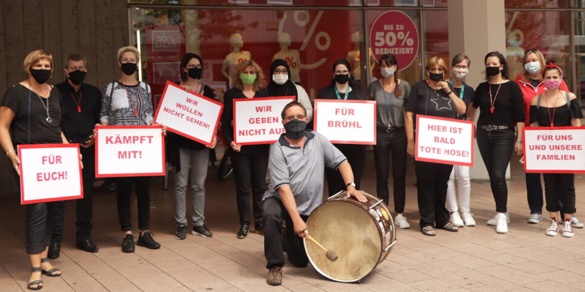Brühl – Auf den Plakaten standen Sätze wie „Hier ist bald tote Hose“ oder „Wir wollen nicht gehen“. Am Samstag protestierten Angestellte des Kaufhofes in Brühl gegen die für Ende Oktober geplant Schließung.