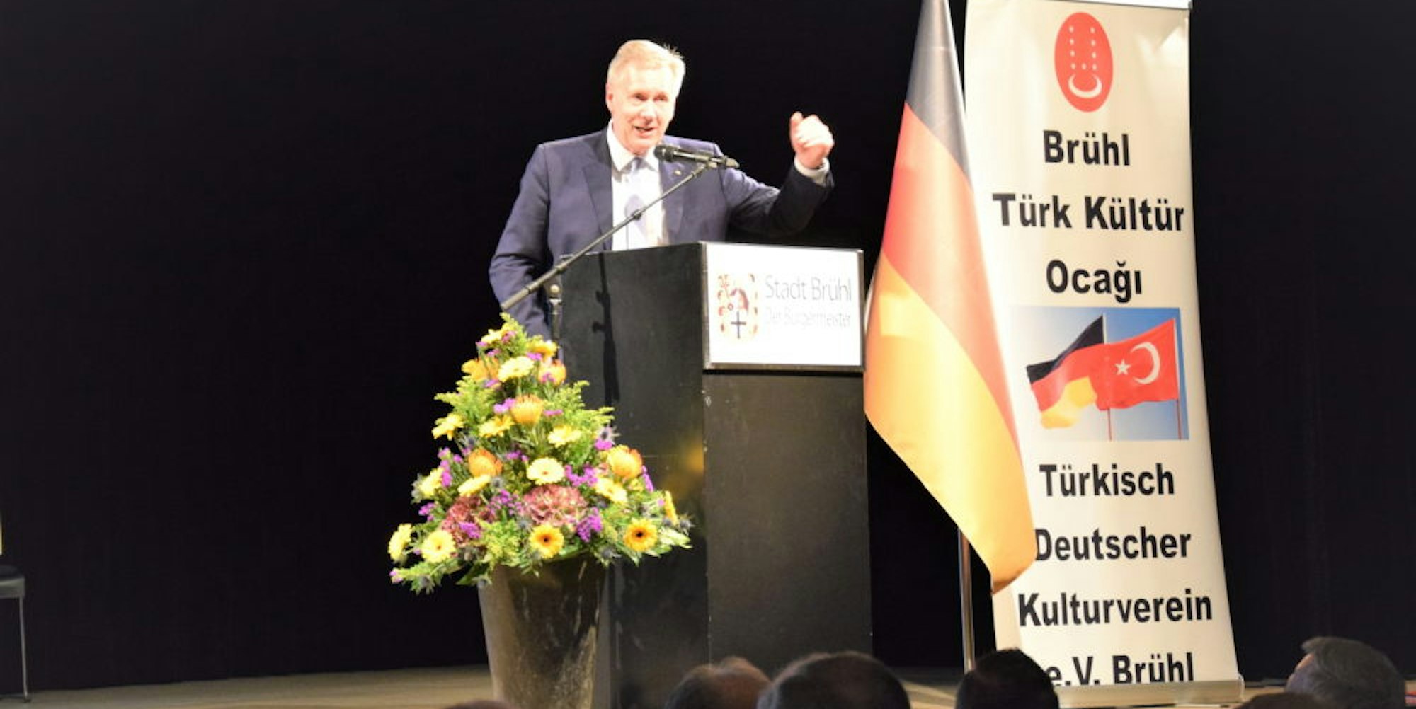 Als souveräner Redner hatte er die Besucher an diesem Abend beeindruckt. Dem Türkisch-Deutschen Kulturverein war es gelungen, Wulff für eine Rede mit dem Titel „Gesellschaftlicher Zusammenhalt in einer vielfältigen Gesellschaft“ in Brühl zu gewinnen. „Das Thema macht die Zukunft des Landes aus“, betonte der Vereinsvorsitzende Aydin Parmaksizoğlu in seiner Begrüßungsrede.