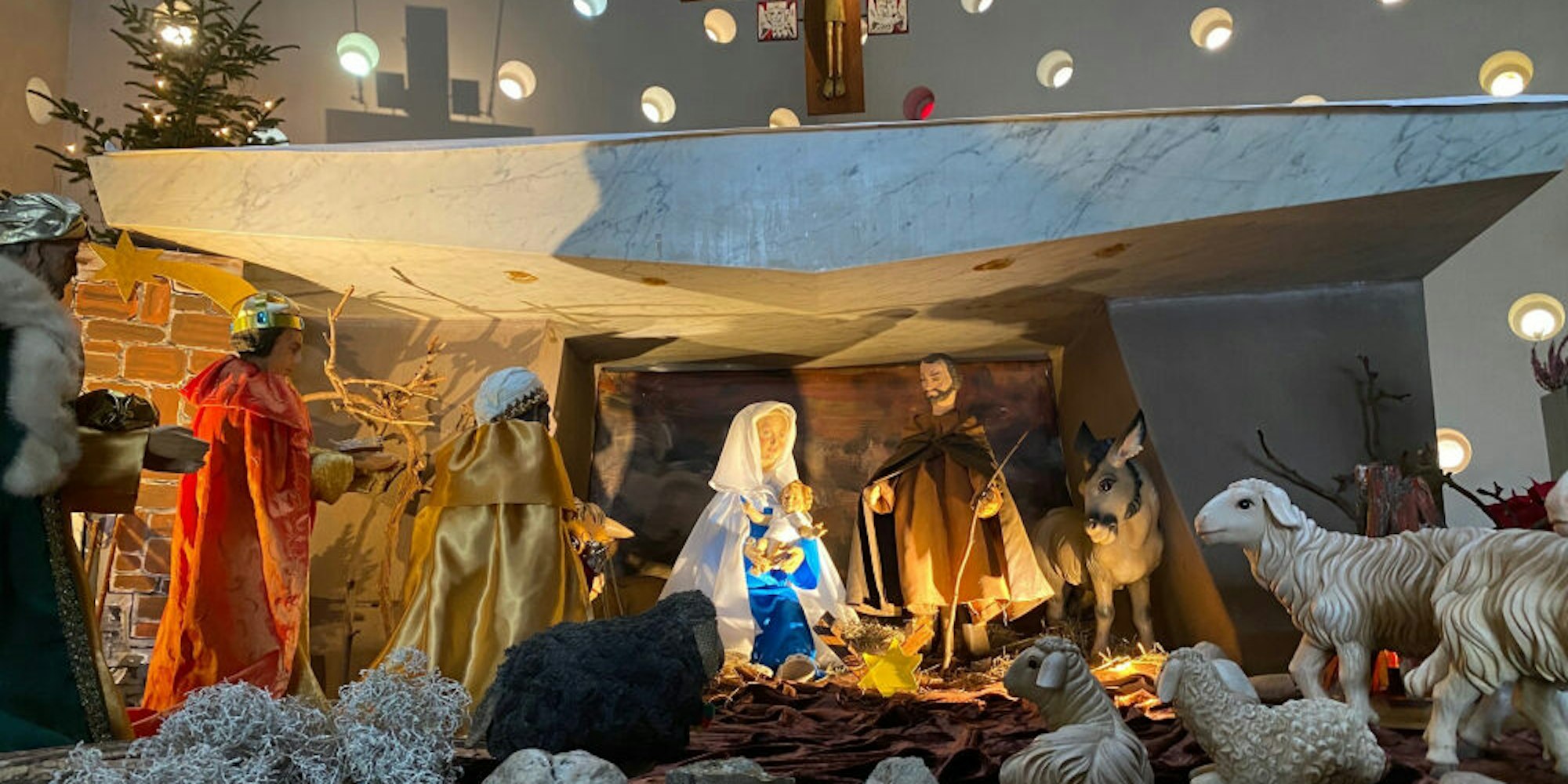 In der Kirche St. Heinrich in Brühl-West steht eine Krippe, deren Figuren aus unterschiedlichen Jahrzehnten stammen.