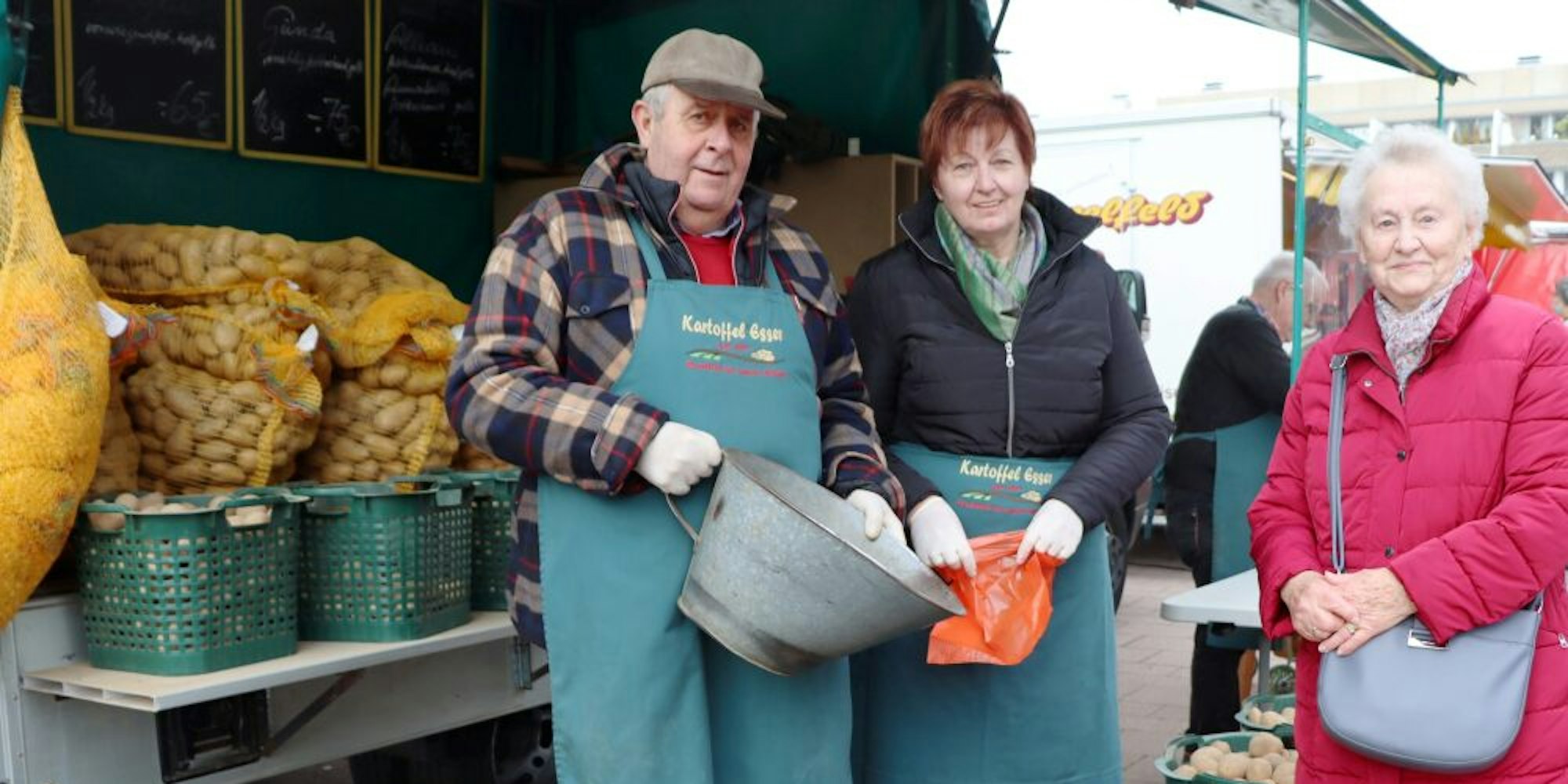 Erftstadt/Brühl – „Den kannte ich schon als er noch ein kleiner Junge war“, sagt Elisabeth Kehr (91). Der Kartoffeleinkauf auf dem Brühler Wochenmarkt zählt für sie genauso zum wöchentlichen Ritual wie das stets lockere und freundliche Schwätzchen dort mit ihrem Kartoffelhändler aus Erftstadt. Seit 73 Jahren ist Elisabeth Kehr verheiratet, und genau so lange kauft sie auch schon ihre Erdäpfel am Stand von Kartoffel Esser.