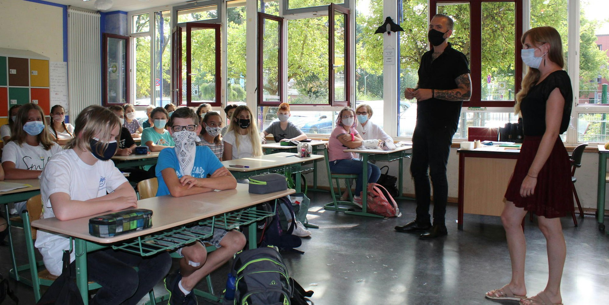 Im Unterricht ab der fünften Klasse gilt für Schülerinnen und Schüler Maskenpflicht. Die Regel gilt ab dem Ende der Herbstferien am Montag bis zu den Weihnachtsferien. Können sie keinen Abstand einhalten, müssen auch Lehrkräfte einen Mund-Nasen-Schutz tragen. Grundschüler müssen auf den Gängen und auf dem Schulhof Masken tragen, im Unterricht aber nicht. Alle 20 Minuten sollen die Fenster in den Klassenräumen für fünf Minuten geöffnet werden. Wo das nicht möglich ist, sollen mobile Lüftungsanlagen helfen.