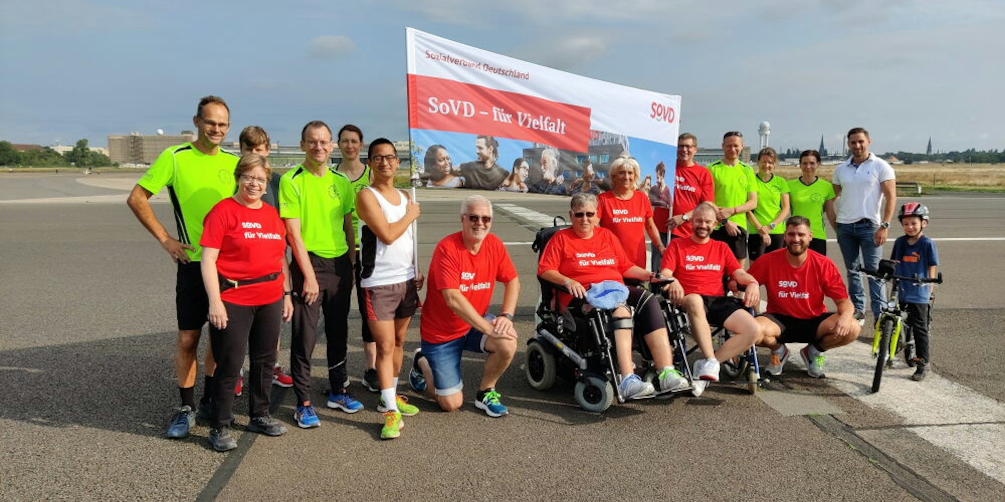 Als „Club der bunten Bänder“ waren Kathy Frimmersdorf, Beatrix Krüger, Lothar und Sven Boving in die Hauptstadt aufgebrochen, um am Inklusionslauf des Sozialverbandes Deutschland (SoVD) teilzunehmen. Nach einem Jahr Zwangspause war der Lauf mit üblicherweise vierstelliger Teilnehmerzahl und viel Publikum zwar vom Berliner Senat abgesagt worden.