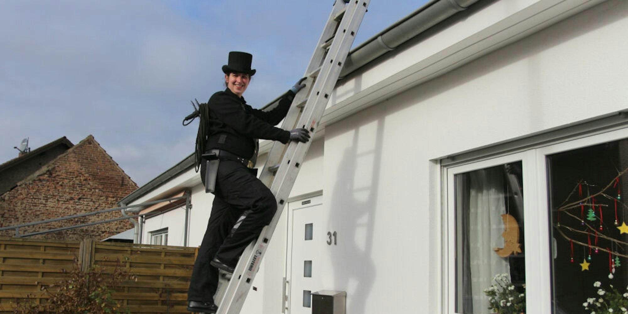 Schon erstaunlich, wie sie das alles unter einen Hut, also unter ihren Zylinder bringt. Nach dem Abitur machte sie eine Ausbildung als Schornsteinfegerin, 2012 ihren Meister und qualifizierte sich anschließend als Gebäude-Energieberaterin. Als vor vier Monaten Sohn Alexander zur Welt kam, machte sie sich selbstständig, und nun hat sie seit Anfang des Jahres einen eigenen Kehrbezirk. Ganz in Schwarz mit einem Lächeln wird sie seitdem als Glücksbringerin in Elsdorf überall freudig begrüßt.