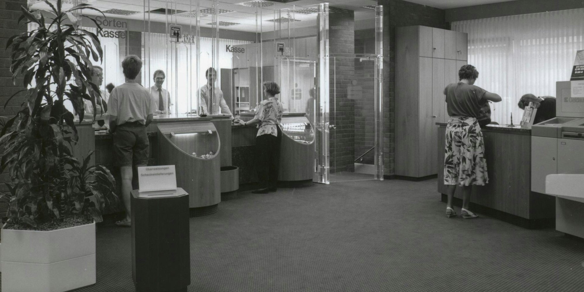 1980 entstand diese Aufnahme im Schalterraum der Elsdorfer KSK-Filiale.