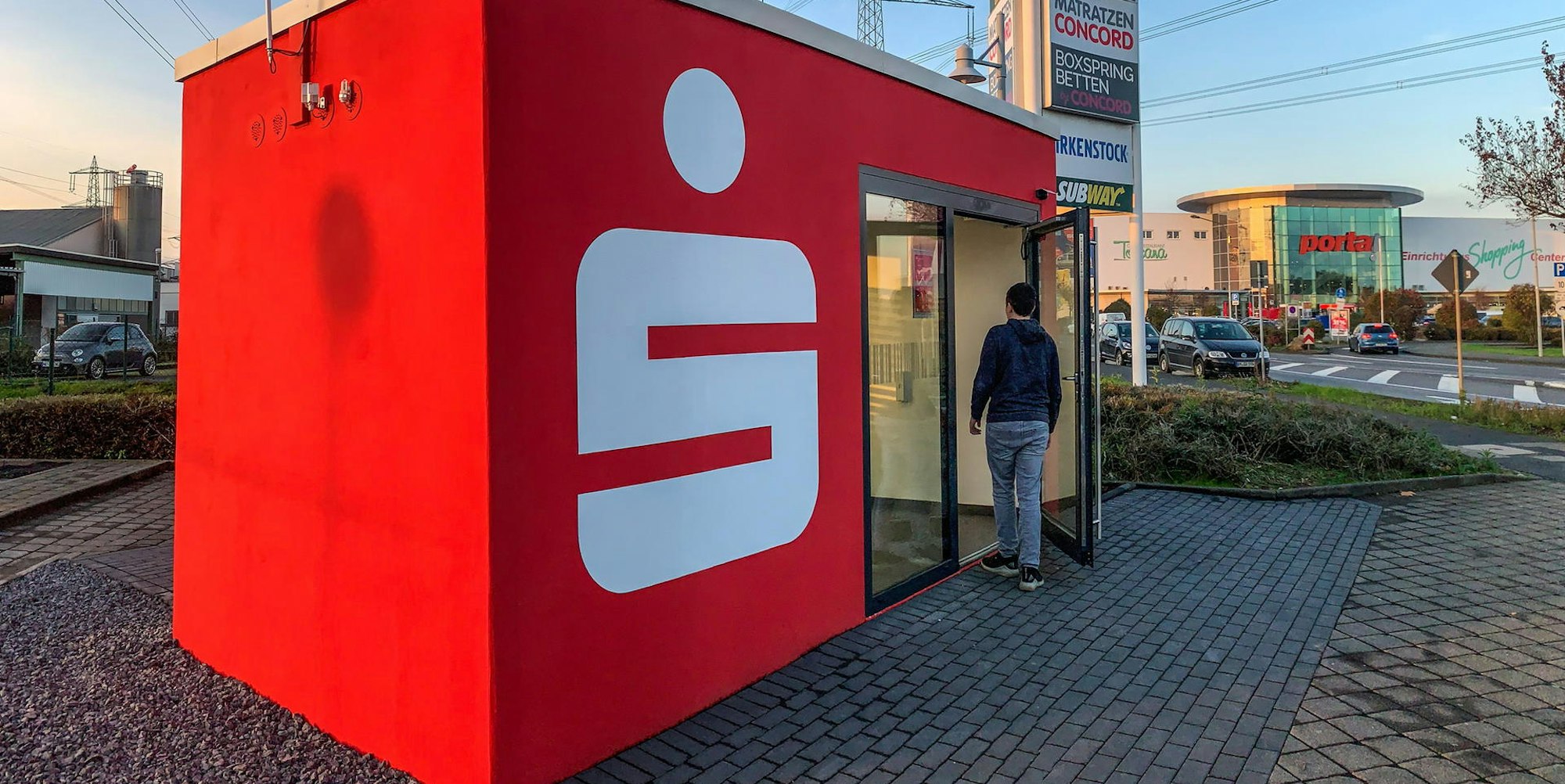 Im Gewerbegebiet Europaallee hat die Kreissparkasse einen neuen Pavillon aufgestellt.