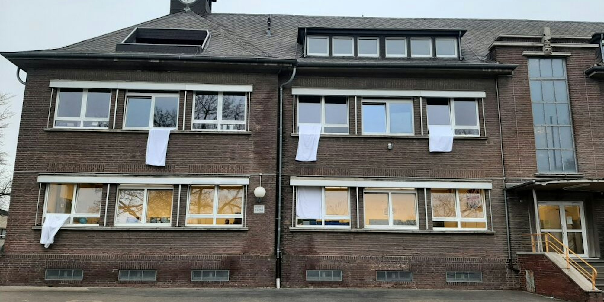 Elsdorf/Rhein-Erft-Kreis – An der Arnoldusschule hat die Elternvertretung stellvertretend für Lehrer, Schüler und Eltern weiße Laken aufgehängt. „Das soll nach außen dokumentieren, dass wir nicht mehr können“, sagt Katharina Wenge, Vorsitzende der Schulpflegschaft. Grund ist die rasant steigende Zahl an Corona-Fällen, die viele Schulen zu verkraften haben, und die Testmodalitäten.