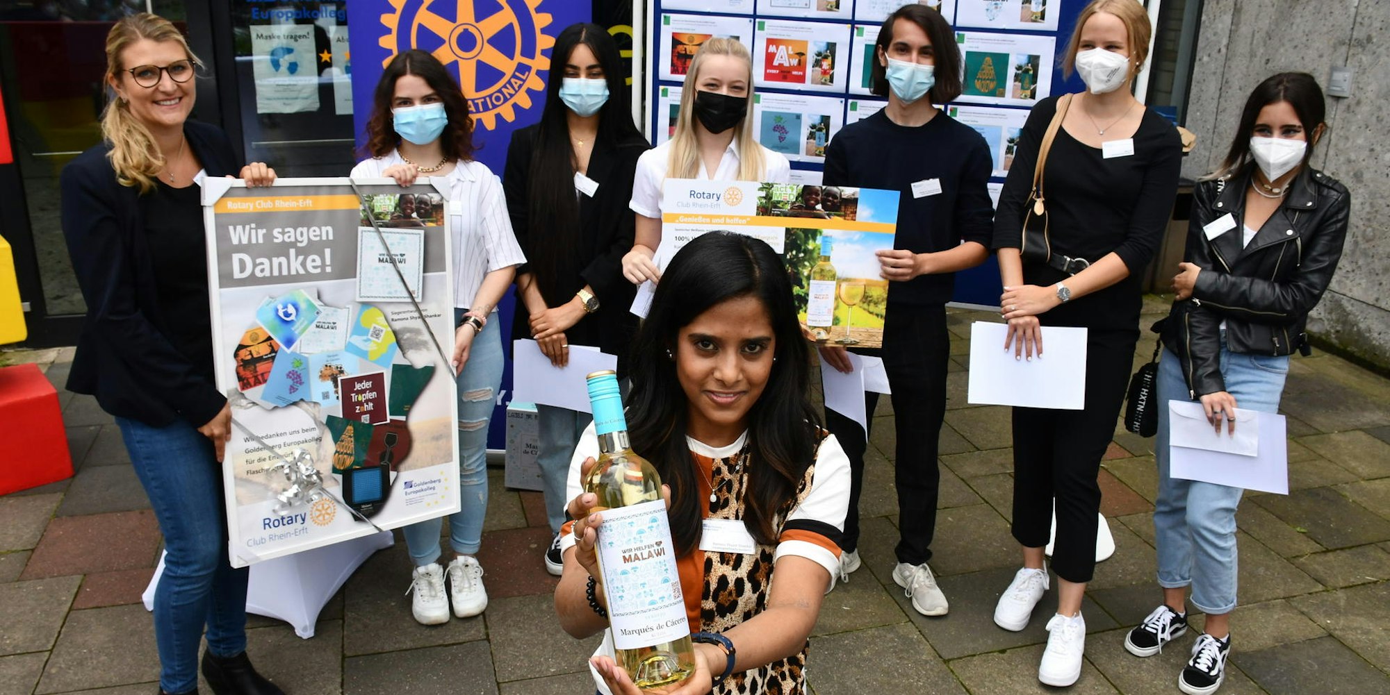 Hürth – Eine Note gibt es nicht für den besten Entwurf, den die Berufsschülerin Ramona Shyamshankar, die am Goldenberg Europakolleg eine Ausbildung zur Gestaltungstechnischen Assistentin und gleichzeitig ihr Abitur macht, eingereicht hat. Aber eines der sieben Etiketten, die sie für den Rotary Club Rhein-Erft gestaltet hat, klebt nun auf 10.000 Weinflaschen, die zugunsten eines Hilfsprojekts für Afrika verkauft werden.