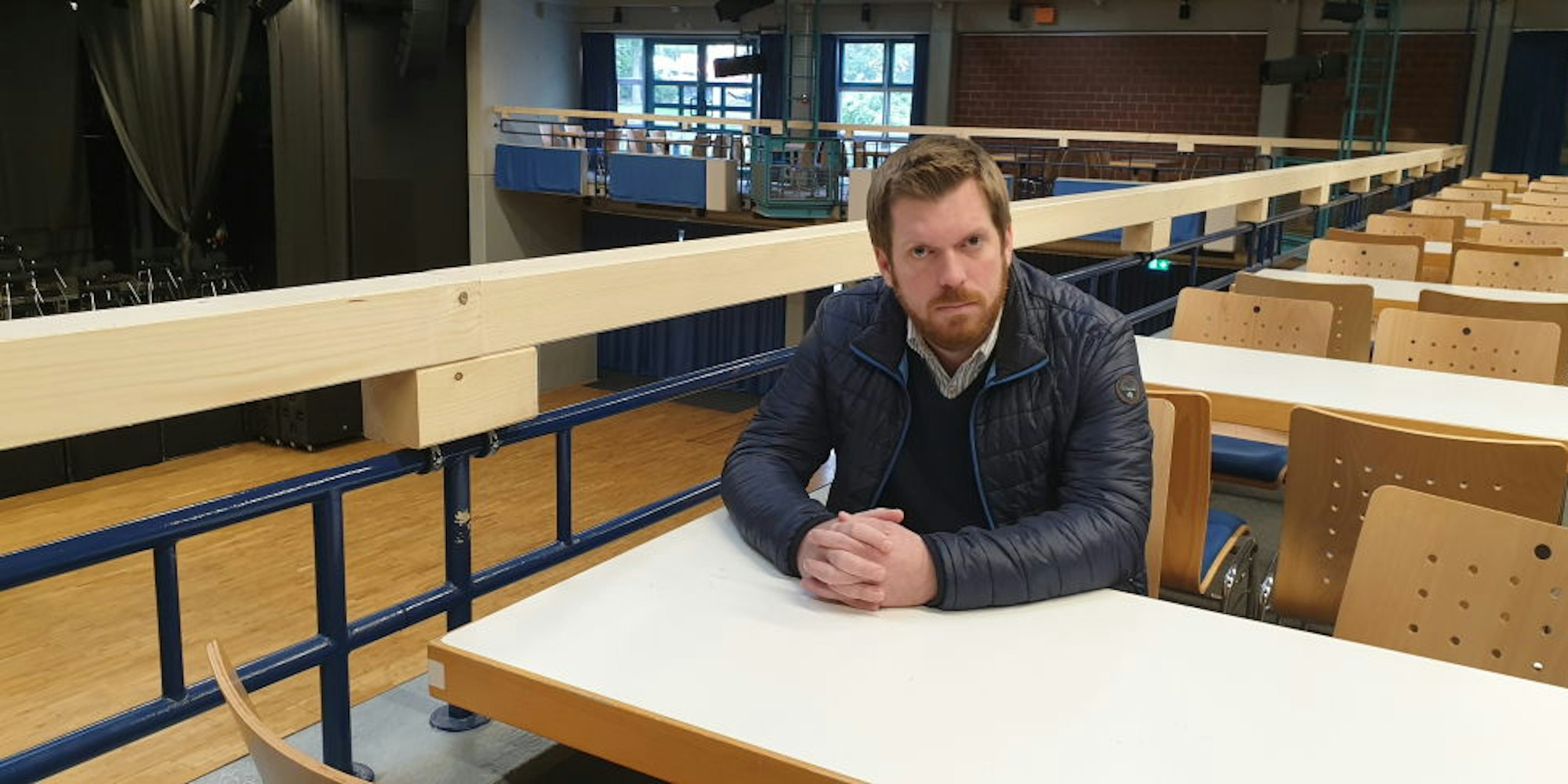 Bürgermeister Dirk Breuer sagt, er könne die Aufregung um das provisorische Geländer nicht nachvollziehen. „Wir haben schnell gehandelt, sonst hätten wir die Empore sperren müssen“, so Breuer. Dass nach so vielen Jahren Handlungsbedarf in Sachen Absturzsicherung entstanden sei, erklärt Breuer mit einer veränderten Rechtslage. Seit 2017 schreibe eine Landesverordnung für öffentlichen Versammlungsstätten eine Geländerhöhe von mindestens 1,10 Meter vor, wenn Tische davorstünden. Bei einer Gebäudeprüfung im September sei festgehalten worden, dass das Geländer auf der Empore nur 90 Zentimeter hoch sei. „Ich hätte mir auch etwas anderes gewünscht“, sagt Breuer. Auf die Schnelle sei kein filigraneres Geländer umsetzbar gewesen.