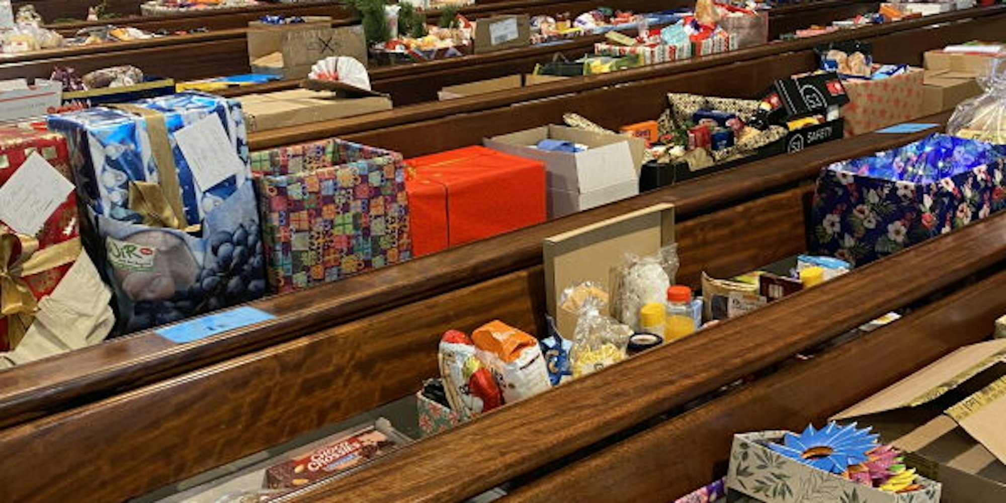 Die Zahl der Kirchenbänke reichte nicht aus, um alle Päckchen unterzubringen.
