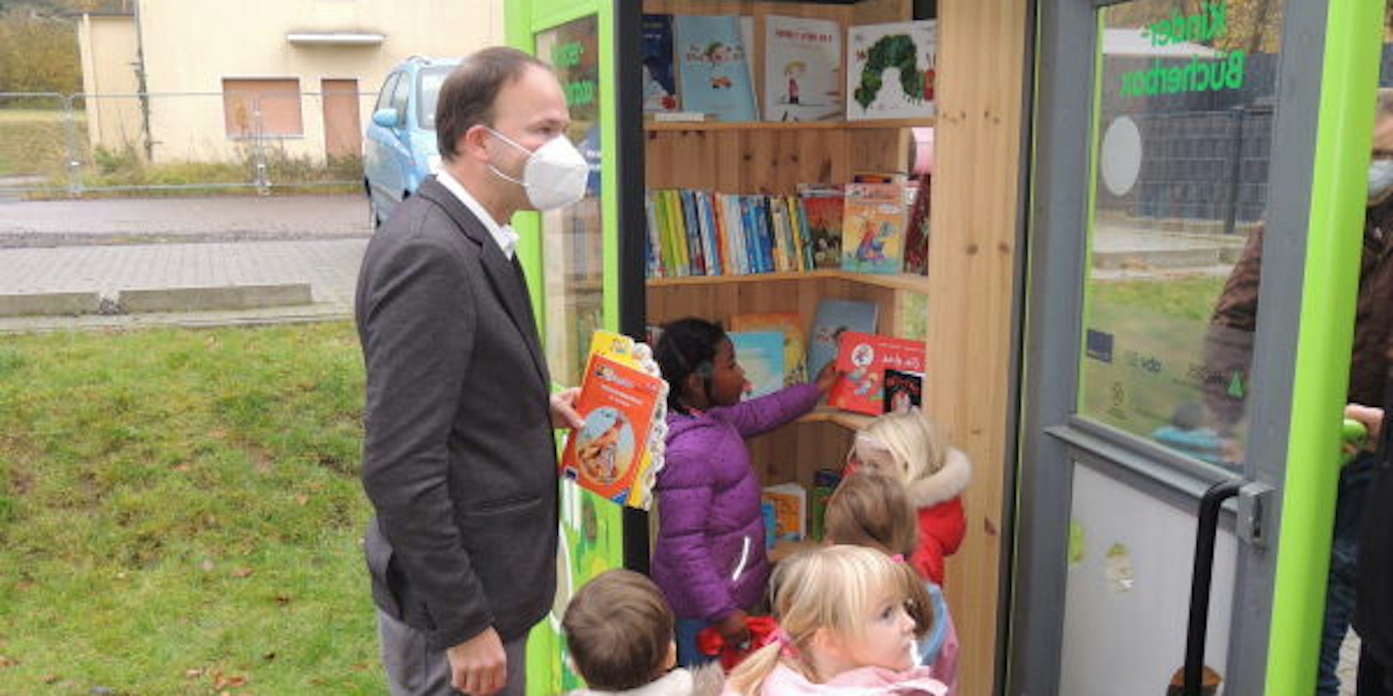 Auch für Schülerinnen und Schüler ist die Bücherbox da. Wer lesehungrig ist, kann mit seinen Eltern zum Einkaufen zu Rewe und zu Aldi fahren, denn direkt hinter dem großen Parkplatz befindet sich die Kita mit der grünen Bücherbox. Aber nicht vergessen: Man soll möglichst auch ein Buch mitbringen. „Das schont Ressourcen und bietet allen Menschen unabhängig von ihrem Einkommen die Chance auf tolle Lese- und Vorleseerlebnisse“, sagte Vizebürgermeister Gero Donner von den Grünen bei der feierlichen Eröffnung.