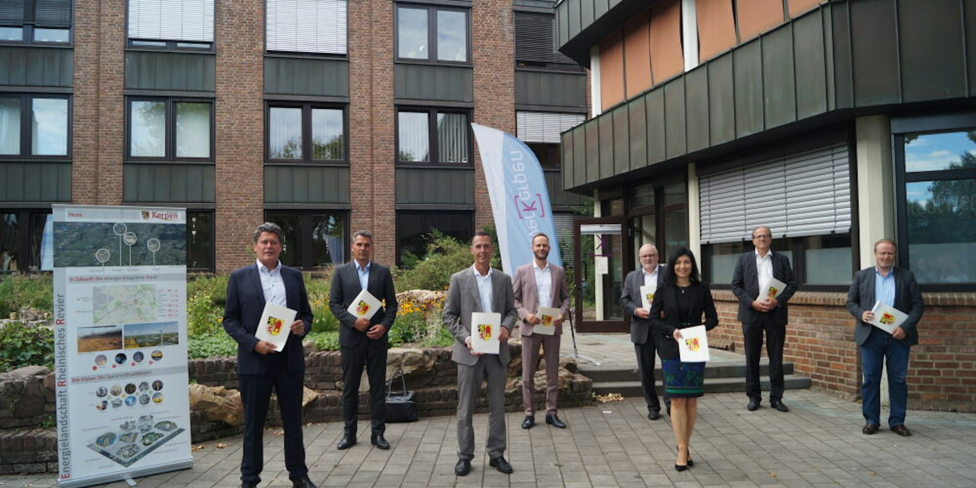 Firmenvertreter vereinbarten mit der Stadt und den Stadtwerken eine Kooperation zur Umsetzung des Projektes „SpeicherStadtKerpen“.