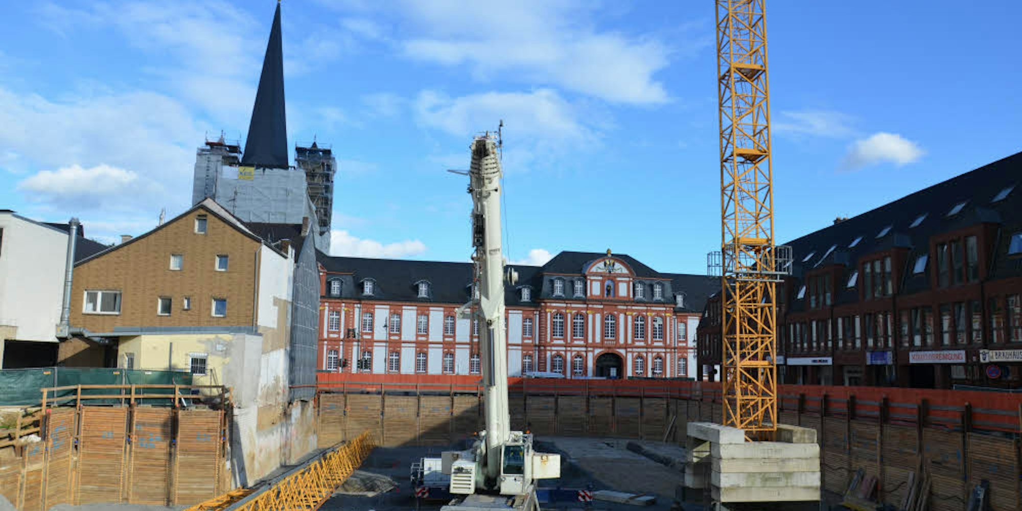 „Es ist wirklich ein spannendes und aufregendes Projekt“, erklärt Orth. Dafür sorgen die prominente Lage in Brauweiler, die Enge der Baustelle – und auch die eine oder andere Überraschung. Als jüngst der erste Teil der umfangreichen Erdarbeiten absolviert wurde, stießen die Bagger auf die Überreste alter Fundamente und Keller. Schutt, Beton und Mauerreste mussten in großer Menge aus der gut fünf Meter tiefen Baugrube geholt werden. Doch das ist bereits Geschichte. Nach dem Aufbau des Baukrans kann nun die Errichtung des ersten Gebäudes, das an die Ehrenfriedstraße und den künftigen Guidelplatz grenzen wird, angegangen werden. Im März soll das Haus, das Wohnungen, Geschäftsräume, ein Café sowie eine Tiefgarage mit 65 Stellplätzen beherbergen wird, im Rohbau stehen. Die Höhe orientiert sich an den bestehenden Häusern an der Südseite des Platzes.