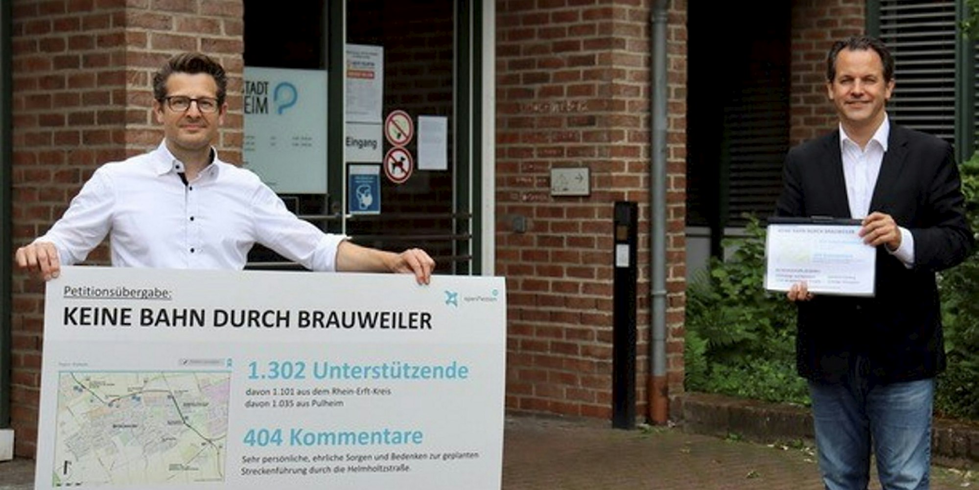 Die Unterzeichner der Petition wünschten, dass die Helmholzstraße als grünes, ruhiges Wohngebiet erhalten bleibe. „Eine Bahn durch die Helmholtzstraße würde den dörflichen Charakter von Brauweiler zerstören und den Ort durch die erforderlichen Schallschutz- und Absicherungsmaßnahmen in zwei Teile trennen. Das können wir nicht wollen“, so Rack.