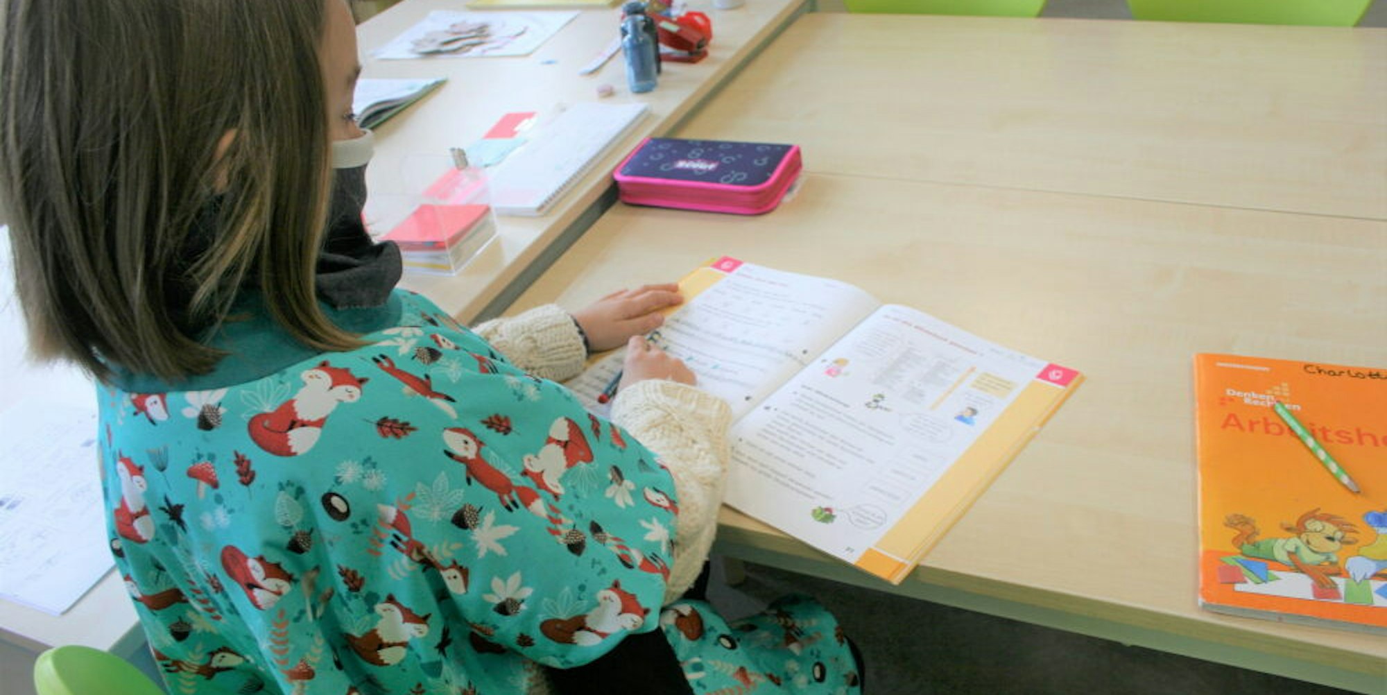 Charlotta und Mathilda trugen ihn im Unterricht zur Probe und waren begeistert. „Meiner ist hellblau, und es sind rote Füchse drauf“, freut sich Charlotta. „Er ist super gemütlich, und ich habe die Hände frei zum Schreiben.“ Das fanden auch viele Mitschüler und deren Mütter, die sowieso in Corona-Zeiten die Nähmaschine wieder für sich entdeckt hatten. Sie können das Näh-Set mit Anleitung und einem bunten Stoff nach Wahl im Laden kaufen. Die Idee kam an. „Sogar aus Frankreich, Österreich und der Schweiz kamen Bestellungen. Das war schon der Wahnsinn“, freut sich Beatrice Englaender.