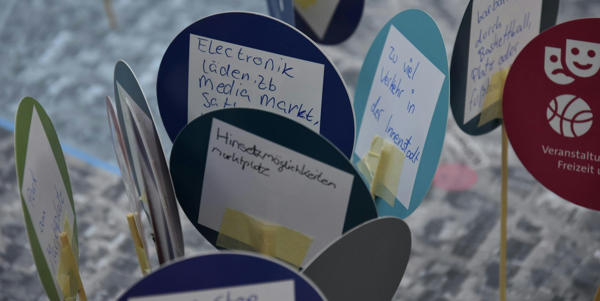 Auf der Wunschliste stehen unter anderem bessere Infrastruktur für Radfahrer und Fußgänger, weniger Verkehr, der als Störfaktor empfunden wird, Car- und Bike-Sharing-Angebote, ein ansprechenderes Ambiente auf dem Marktplatz und dem als Einkaufszone gestalteten Abschnitt der Straße Auf dem Driesch sowie ansprechender gestaltete Grünflächen im Barbarapark und im Stadtgarten.