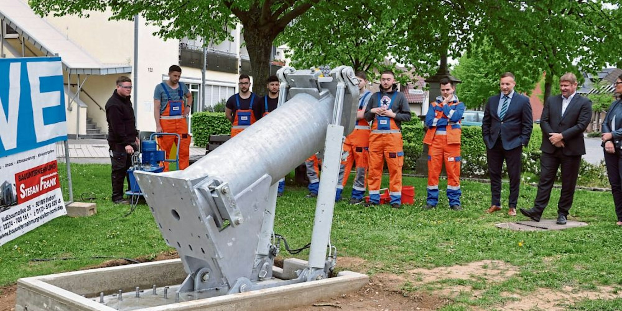 In Neu-Etzweiler hilft seit dem vergangenen Jahr eine Hydraulik bei der Aufstellung des Maibaums.