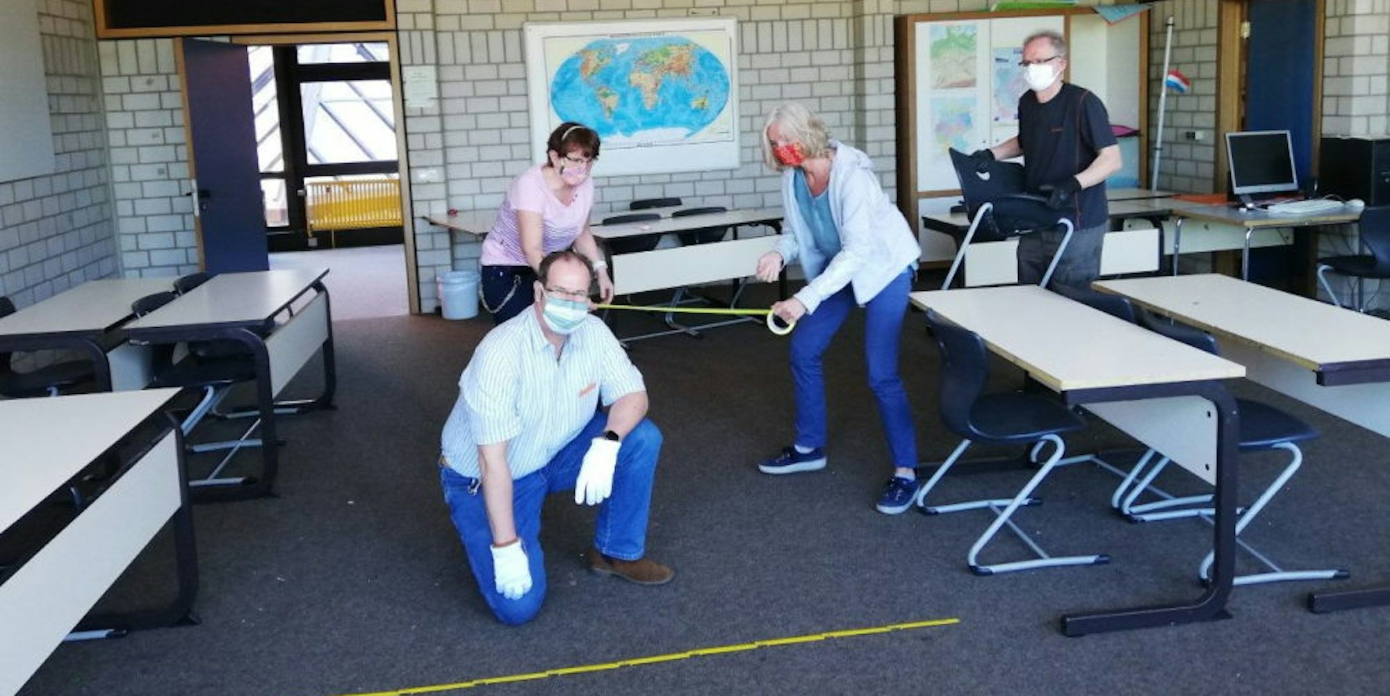 Das Europagymnasium Kerpen bereitet sich auf die Wiedereröffnung vor. Alle Lehrer packen mit an.