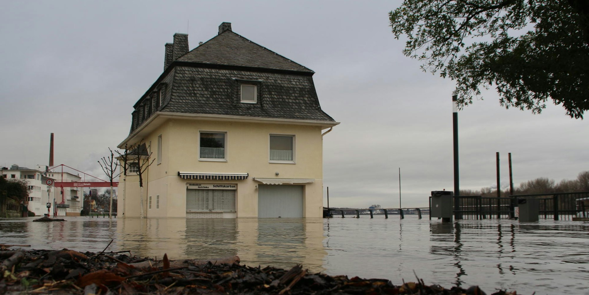 Mittwochmittag stand der Pegel bei 8,24 Meter (Kölner Pegel), Tendenz steigend. Ab 8,30 Meter wird die Schifffahrt auf dem Rhein aus Sicherheitsgründen eingestellt. Zum einen kommen die Schiffe dann kaum noch unter den Brücken hindurch, zum anderen ist die Gefahr durch das Treibgut zu hoch.