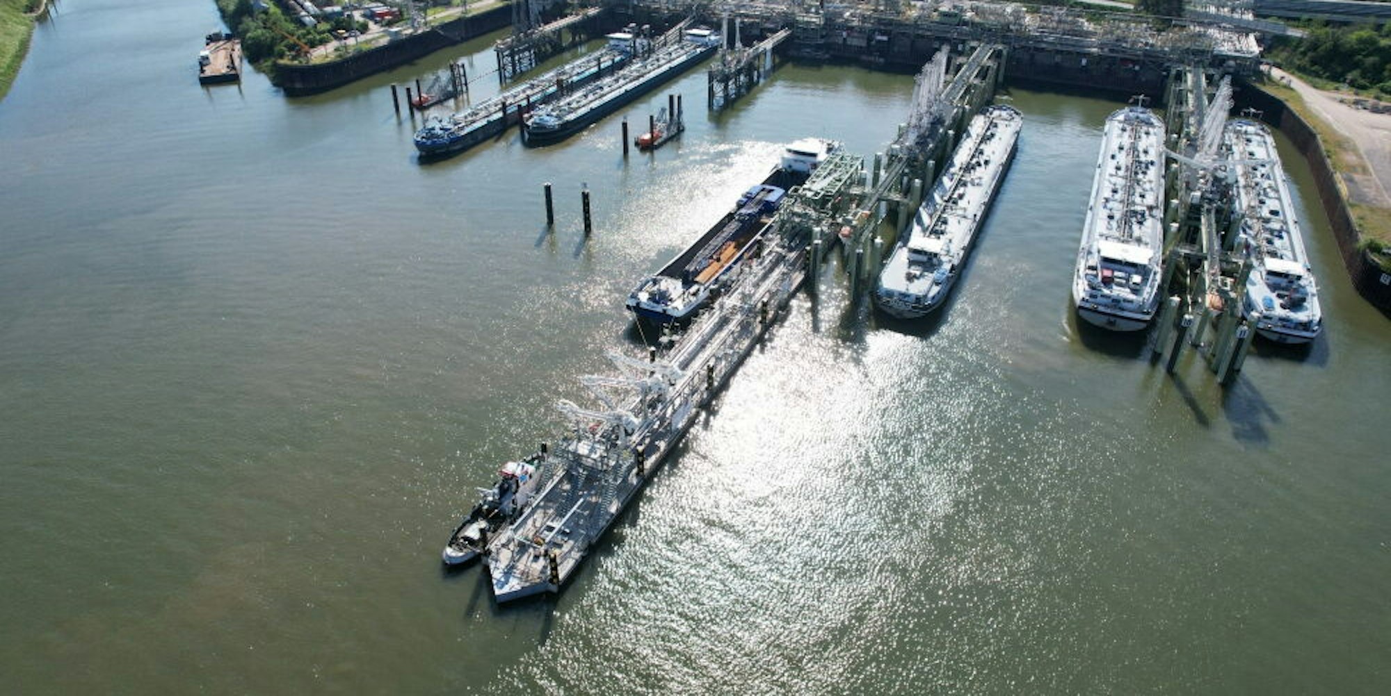 „Der neue Jetty vom Energy and Chemicals Park Rheinland schwimmt“, erklärt Jörg Nielsen, Leiter der Kommunikationsabteilung. Daher würden nur noch zwei Dalben benötigt, um den Anleger in Position zu halten. Zwei weitere Dalben dienten zum Festmachen der Schiffe, und zwei Dalben seien für den Landzugang erforderlich. In den kommenden Wochen soll die Brücke befestigt werden.