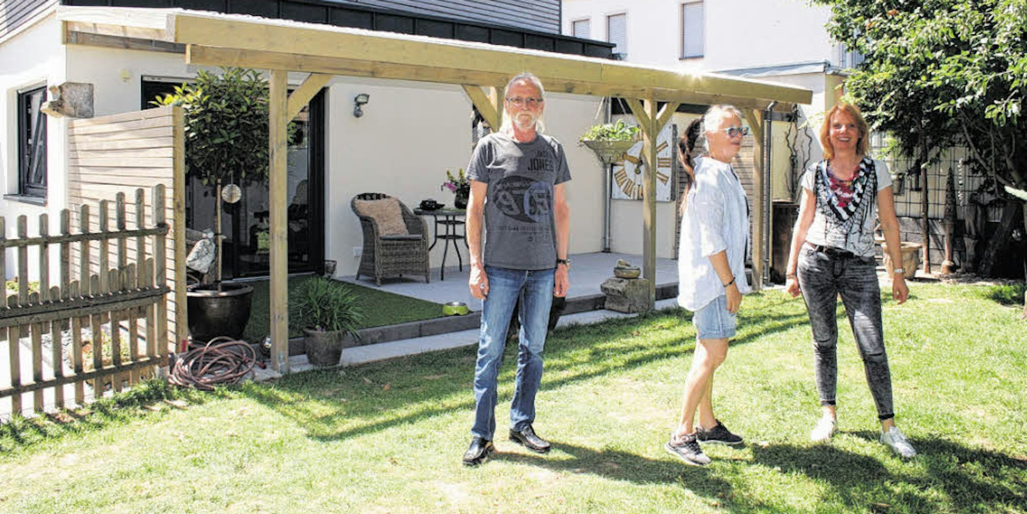 Dieter und Monika M. Breuer (v. l.) haben mit Architektin Sylvia Fröbel getüftelt, um den Platz optimal zu nutzen. Es ist noch genug Garten übrig geblieben.