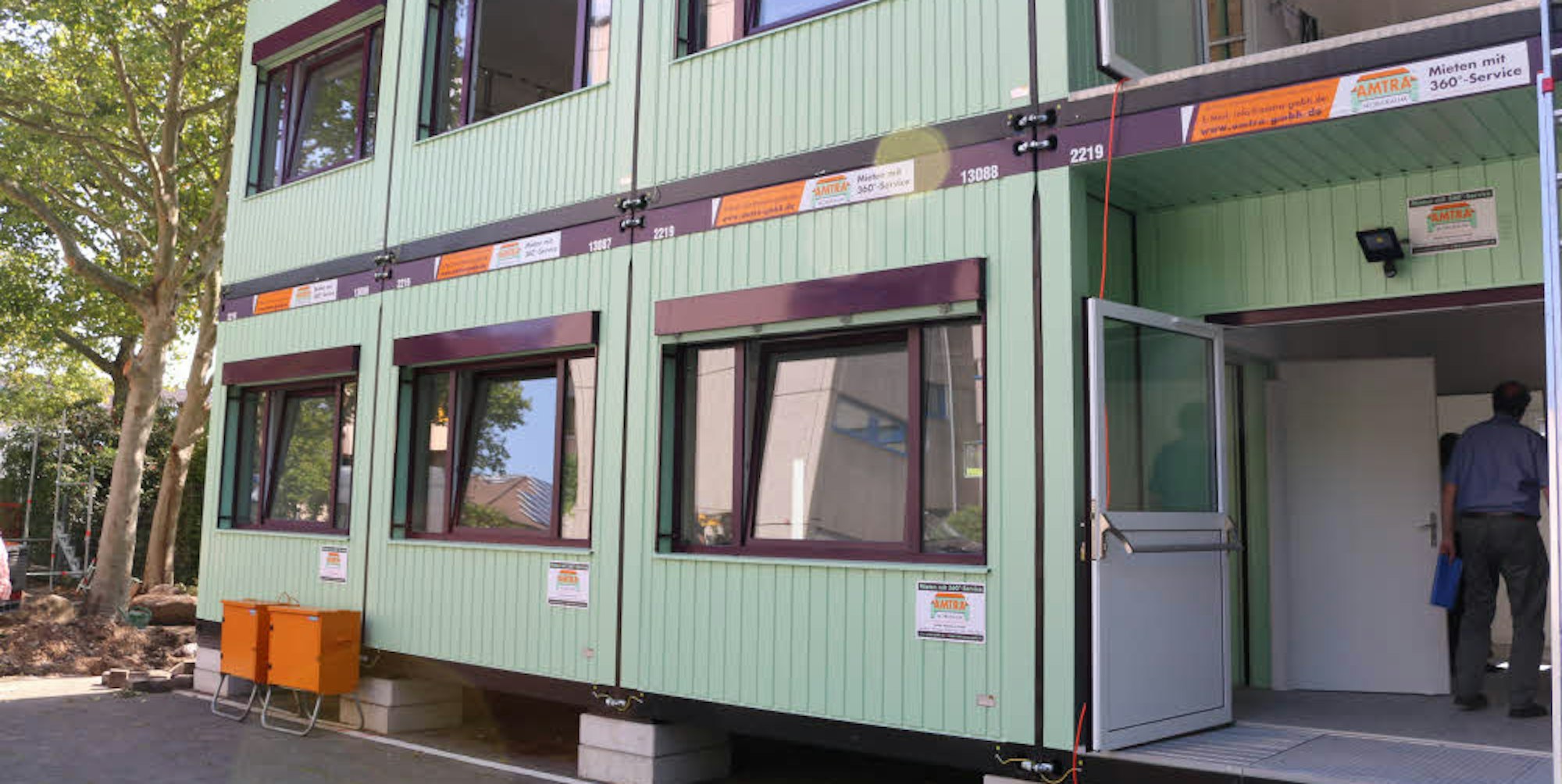 Die Stadt kündigte an, die betroffenen Räume zu sperren. Hauptschule und Gymnasium sollen ins Zentralgebäude und in mobile Klassenräume auf dem Schulhof umziehen. Anfang der vergangenen Woche hatte das Wesselinger Unternehmen Amtra damit begonnen, die mintgrünen Container auf dem Schulhof aufzustellen.