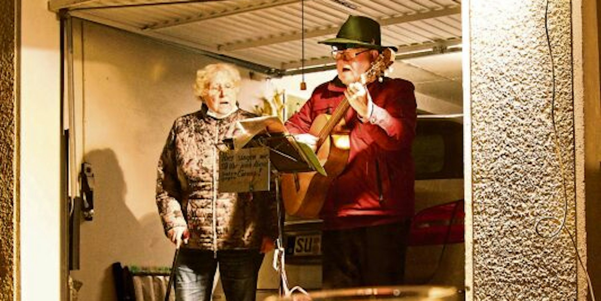 „Wir führen die Tradition der italienischen Balkonsänger fort“, sagt Vorsänger Kieseier, der sich auf die Treue der Nachbarn verlassen kann. Die kommen stets pünktlich und stimmen ein in die drei bis vier der Jahreszeit angepassten Volks-, Wander- oder Kirchenlieder. Am Montag waren es Adventslieder, und trotz des fisselichen Wetters erschienen zehn stimmsichere Gleichgesinnte.
