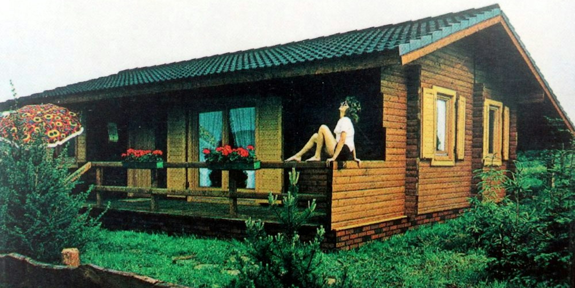 Das erste Holzhaus entstand 1972. Für das Werbefoto posierte Franz Stommels Cousine auf der Veranda.