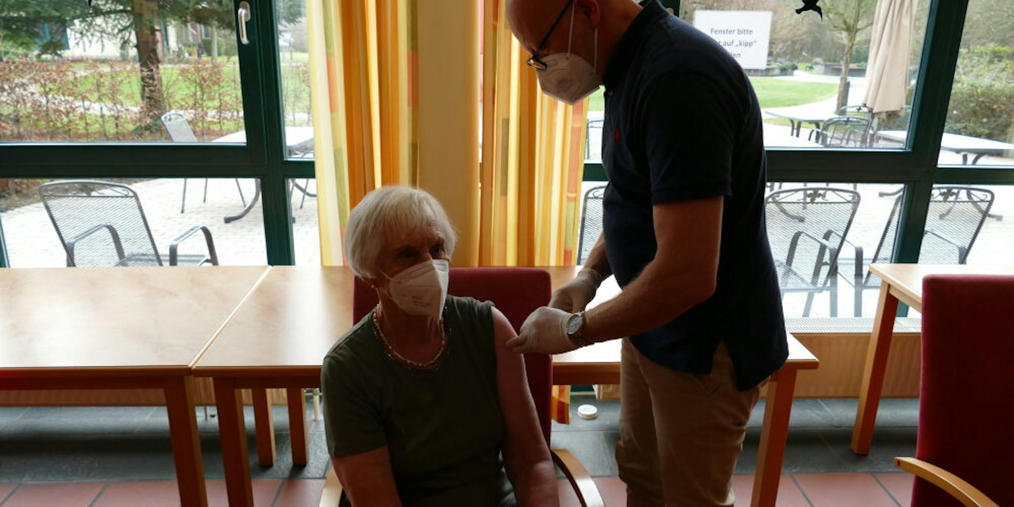 Hennef – Ob bald das alte, gewohnte Leben zurückkehrt? Mit jeder Spritze des Corona-Impfstoffs erhalten die Bewohner der Curanum-Seniorenresidenzen an der Kurhaus- und der Humperdinckstraße auch ein wenig Hoffnung. Rund 600 Dosen des Biontech-Impfstoffs erhielten die beiden Einrichtungen am Samstag – genug, um alle Bewohner und Mitarbeiter vor dem Virus zu schützen. Bis zur Impfung war eine lange Vorbereitung notwendig.