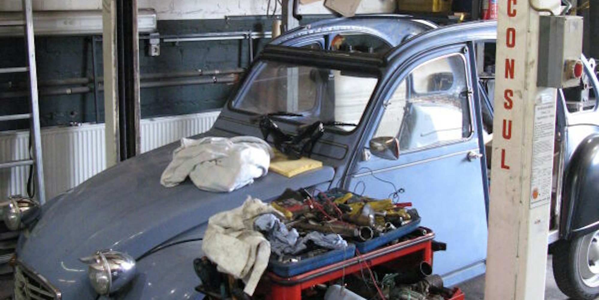 Pro Monat einen alten 2CV günstig zu kaufen, zu reparieren und wieder zu verkaufen, erwies sich zu Beginn als einträgliches Geschäftsmodell. „Das kann man im Reifencenter nicht verdienen“, sagt Schmidt, der zwischenzeitlich als Reifenmonteur in Bonn gearbeitet und damals Geld für die eigene Werkstatt zurückgelegt hatte. „Ich wollte keine Schulden machen“, erklärt er. „Mit einer Werkzeugkiste und einem Wagenheber habe ich angefangen.“ Erst, als er es sich leisten konnte, kam die Hebebühne dazu.