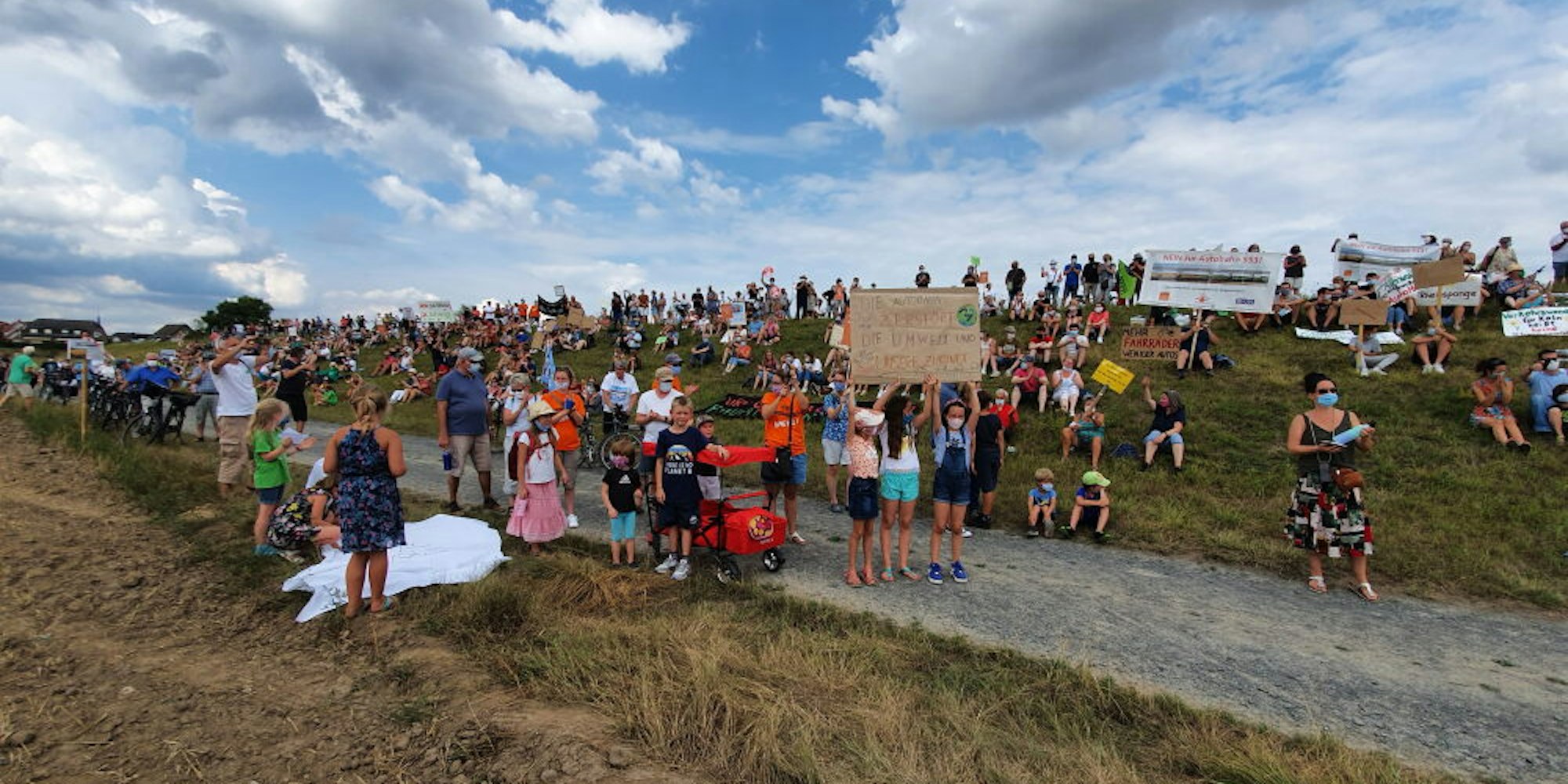 Mehrere Hundert Menschen aus Köln und Niederkassel hatten im August im Langeler Bogen gegen die Rheinspange 553 demonstriert.